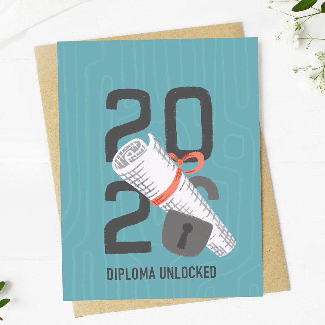 Send congratulations to the recent student who just graduated with this playful "diploma unlocked" graduation card.