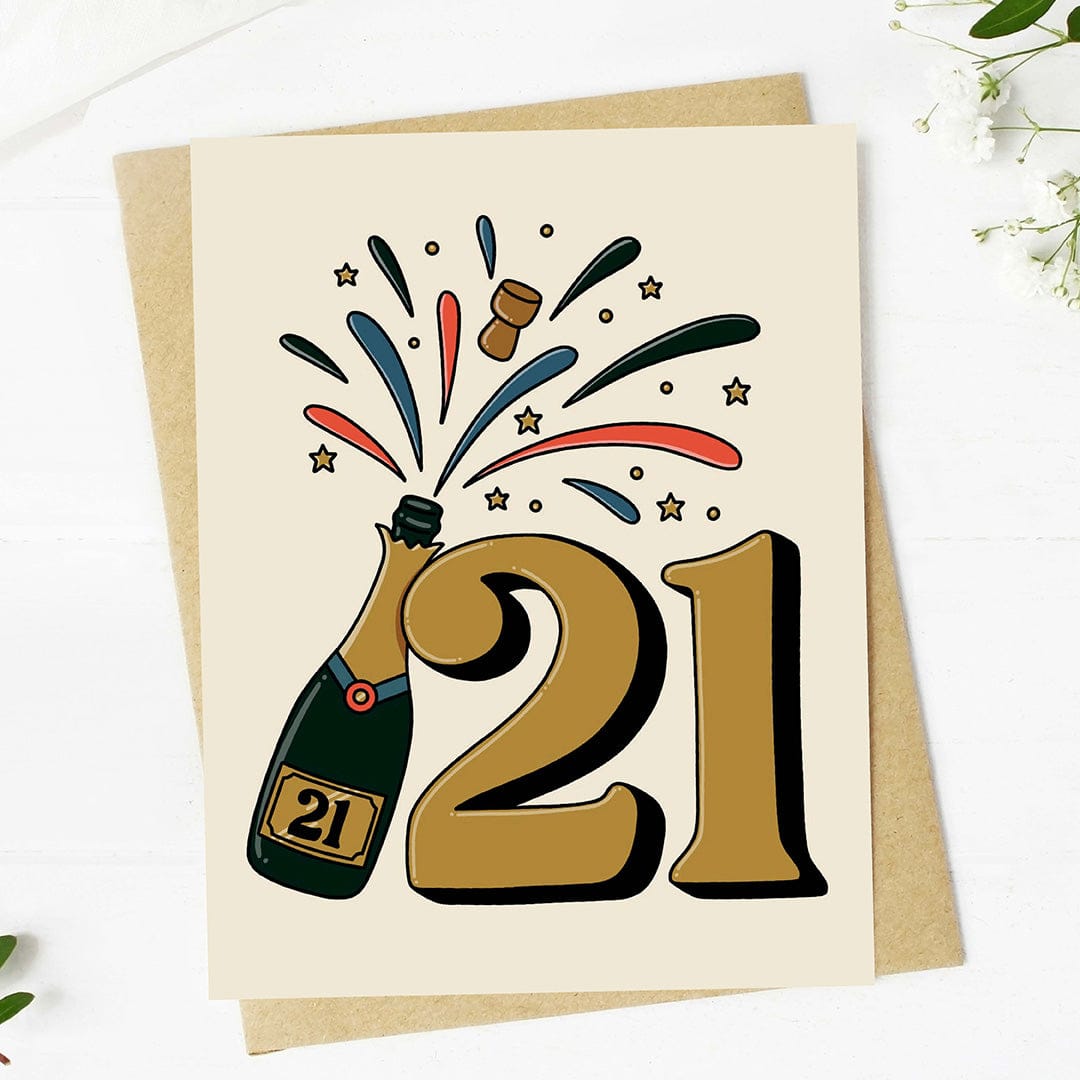 Toast to turning 21 with this elegant champagne-inspired birthday card, guaranteed to make this milestone feel extra special.