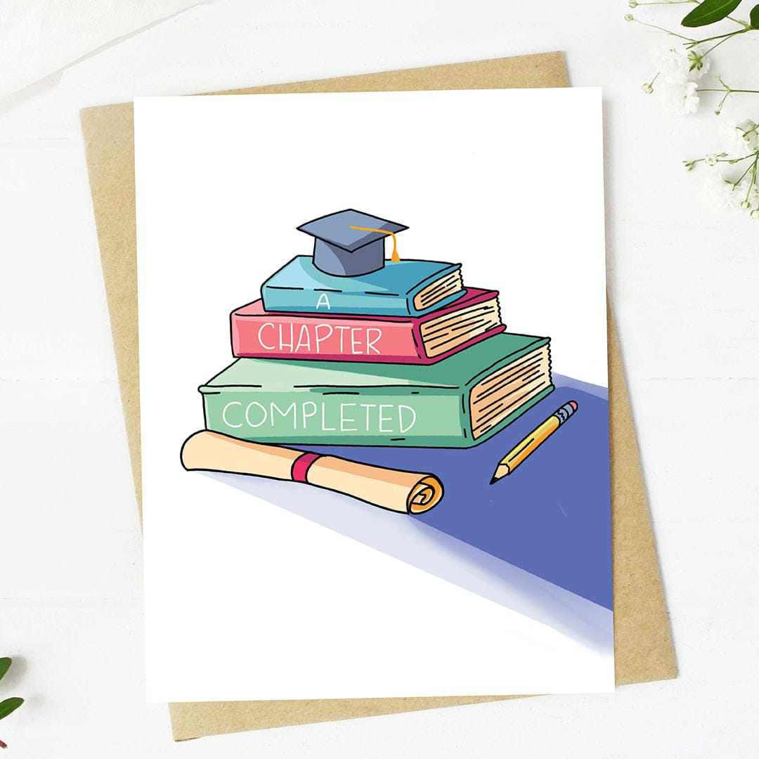 Mark the end of one story and the beginning of another with this book-themed graduation card.