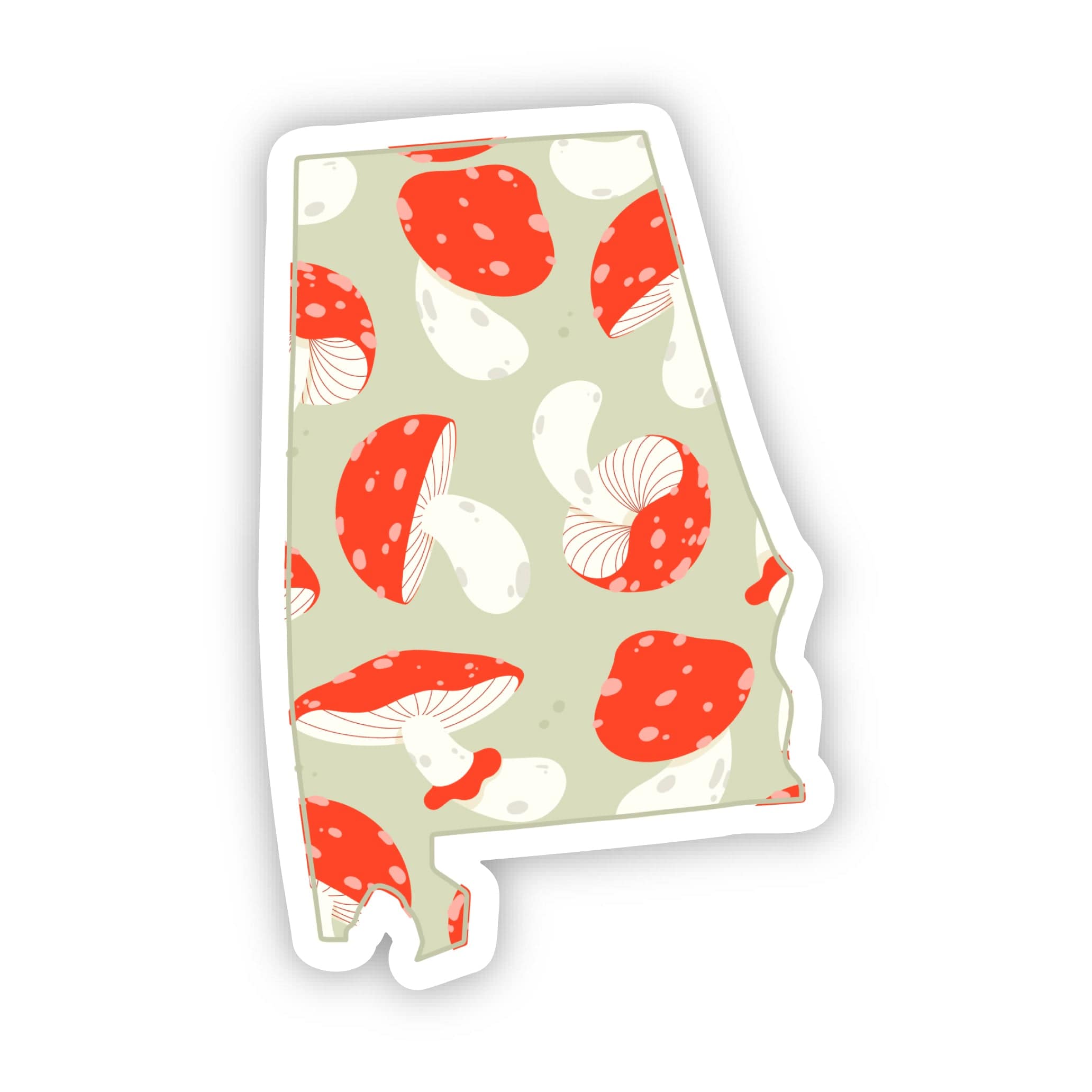 Share your fun side with our mushroom pattern state stickers. If you love nature and the state of Alabama, this sticker is for you! High quality vinyl sticker. Great to decorate laptops, water bottles, car windows, coolers, suitcases, bikes, kayaks, phone cases, journals, and more.