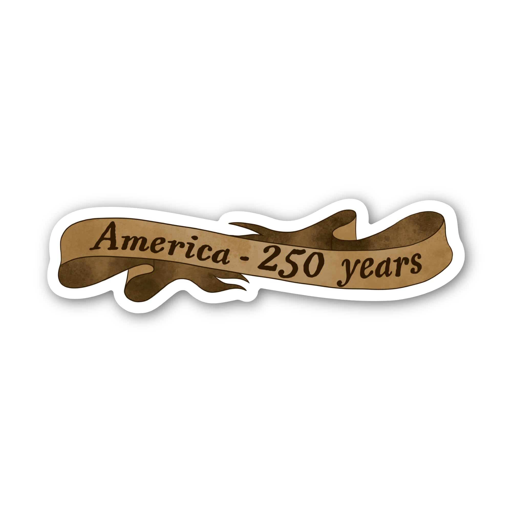 Celebrate 250 years of the greatest country in the world - USA! This "America - 250 years" ribbon sticker is a great way to share your patriotism. High quality vinyl sticker. Great to decorate laptops, water bottles, car windows, coolers, suitcases, bikes, kayaks, phone cases, journals, and more.