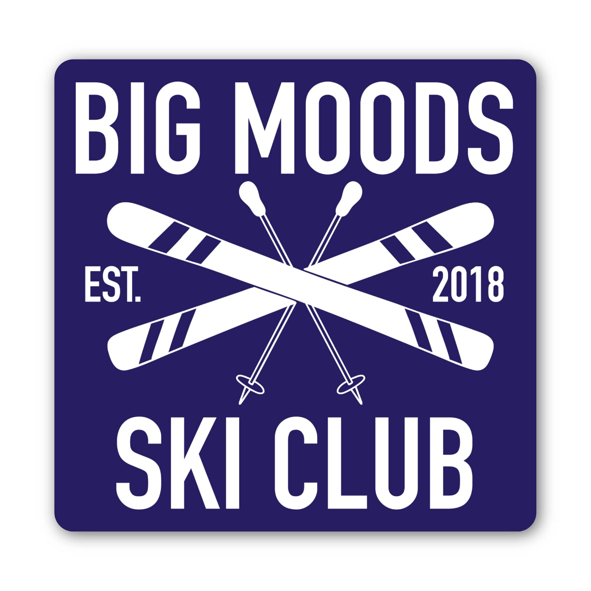 Join the Big Moods Ski Club with this square sticker design. Perfect for anyone who vibes with fresh snow and chill days. High quality vinyl sticker. Great to decorate laptops, water bottles, car windows, coolers, suitcases, bikes, kayaks, phone cases, journals, and more.