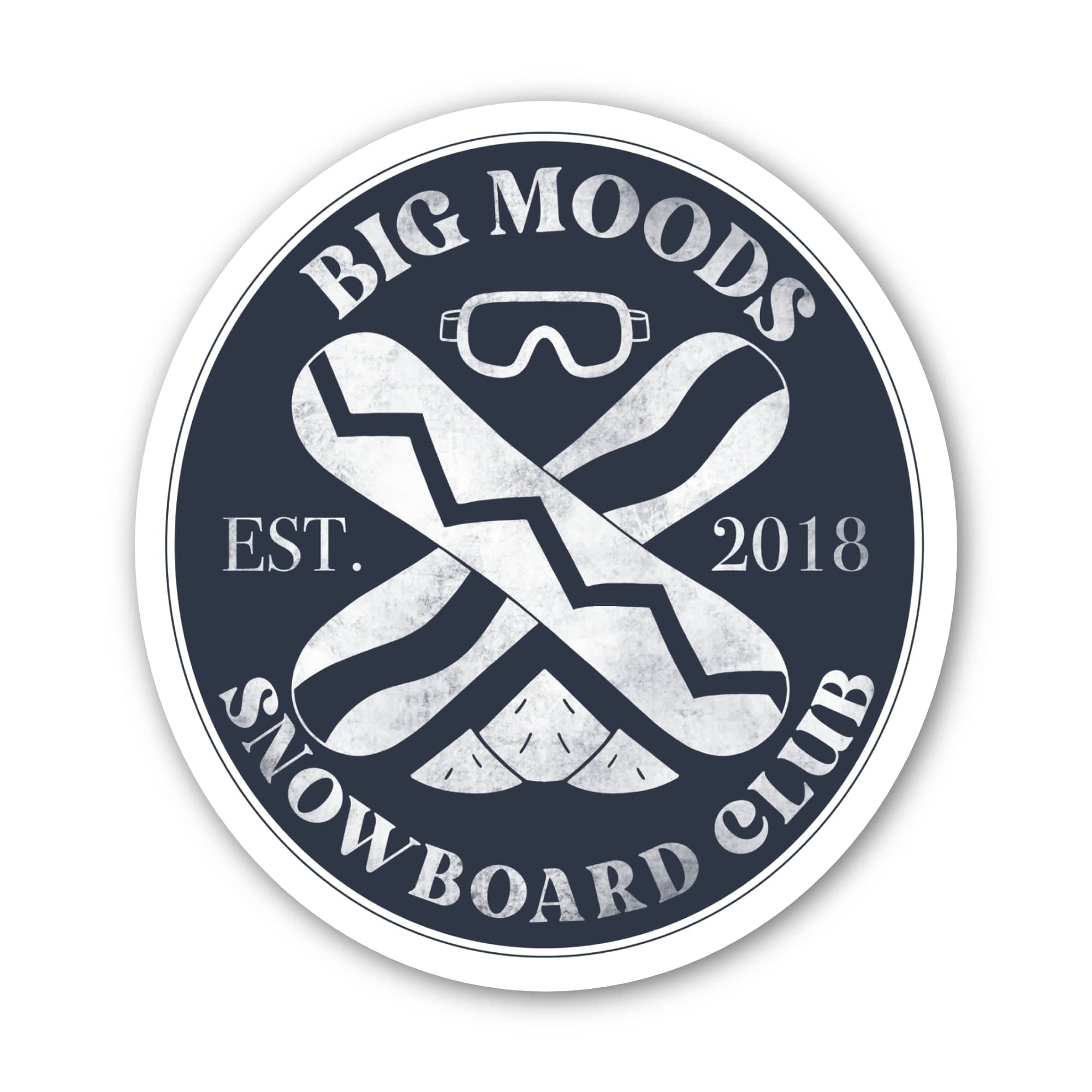 Join the Big Moods Snowboard Club with this bold badge sticker design. Perfect for anyone who loves long runs and days spent on the slopes. High quality vinyl sticker. Great to decorate laptops, water bottles, car windows, coolers, suitcases, bikes, kayaks, phone cases, journals, and more.