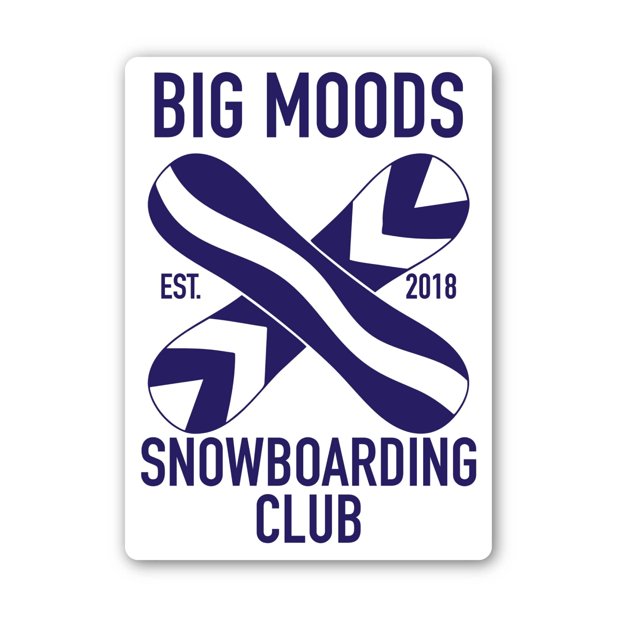 Join the Big Moods Snowboarding Club with this white sticker design. Perfect for anyone who loves long runs and days spent on the slopes. High quality vinyl sticker. Great to decorate laptops, water bottles, car windows, coolers, suitcases, bikes, kayaks, phone cases, journals, and more.