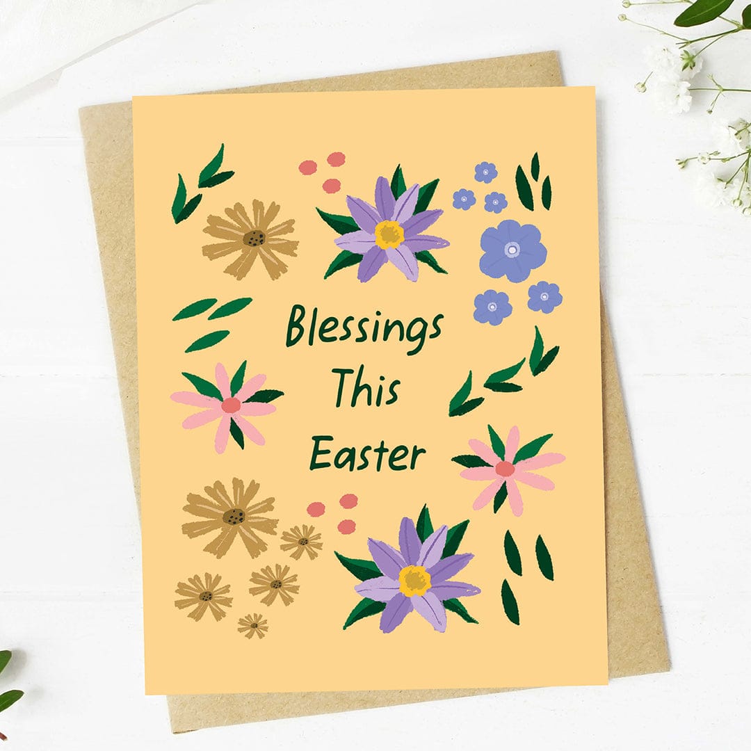 Share the spirit of Easter with this "Easter blessings" greeting card, featuring Easter lilies and a cross - a beautiful way to send blessings to loved ones.