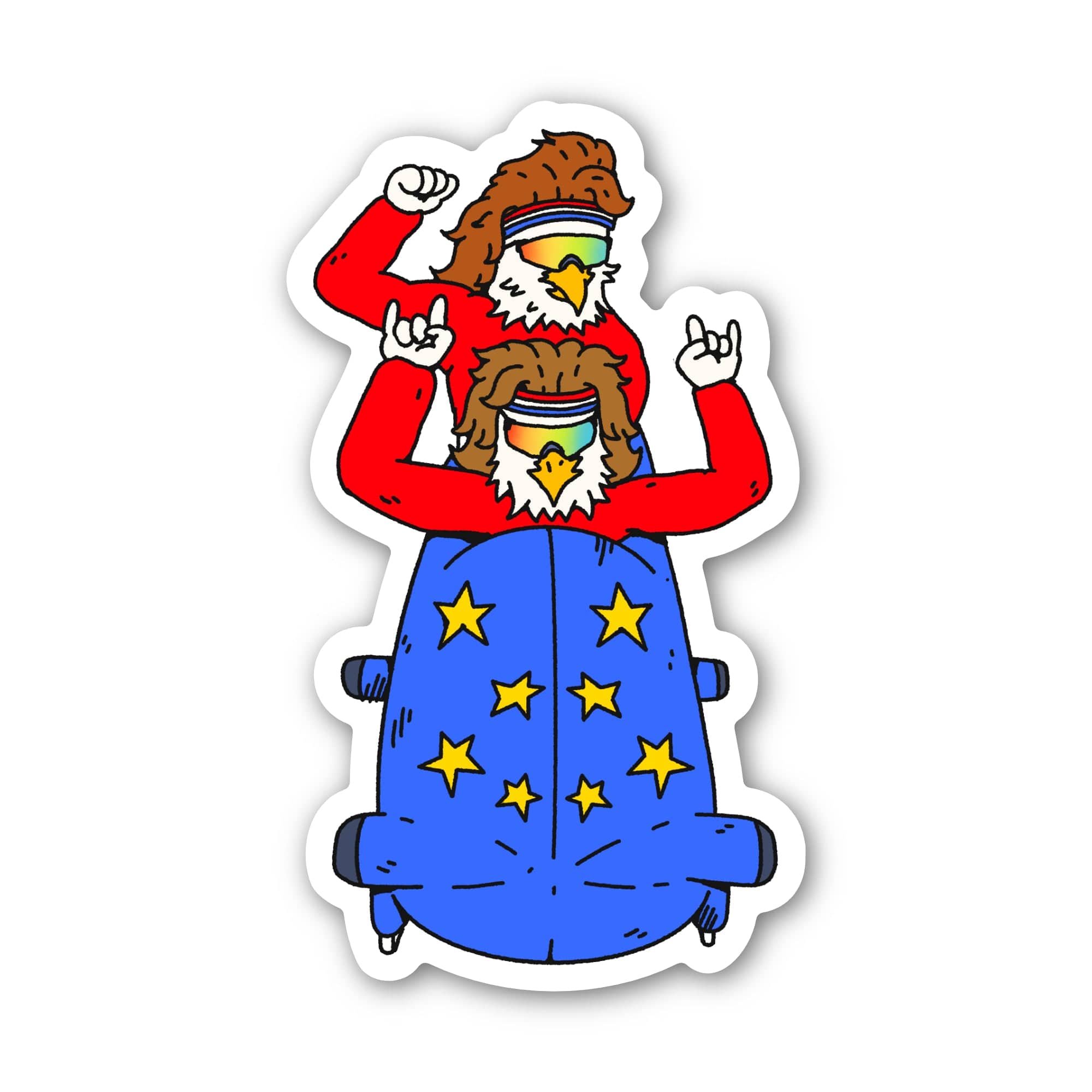 Show your support for Team USA in the winter olympics with our funny 'merica eagle bobsleigh sticker. Cheer on your favorite athletes with this patriotic sticker - let's bring home the gold! High quality vinyl sticker. Great to decorate laptops, water bottles, car windows, coolers, suitcases, bikes, kayaks, phone cases, journals, and more.