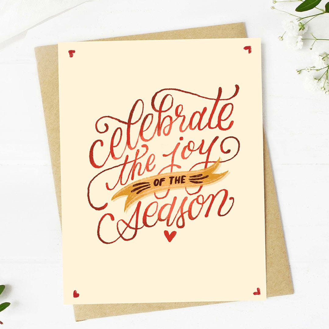 Send season's greetings to friends and family with our "celebrate the joy of the season" Christmas card.
