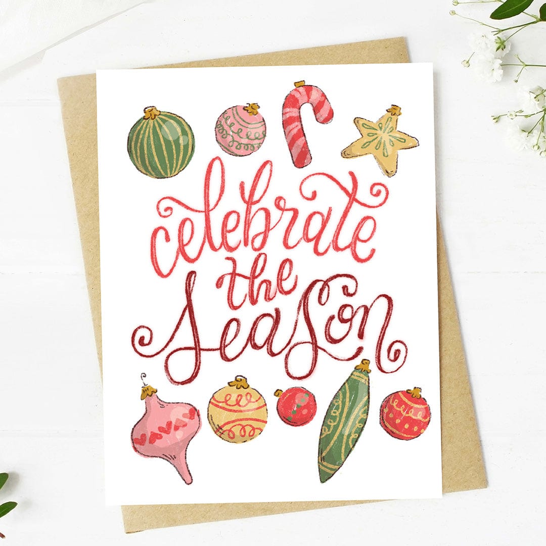 Be sure to wish your loved ones a merry Christmas with our "celebrate the season" ornaments card.
