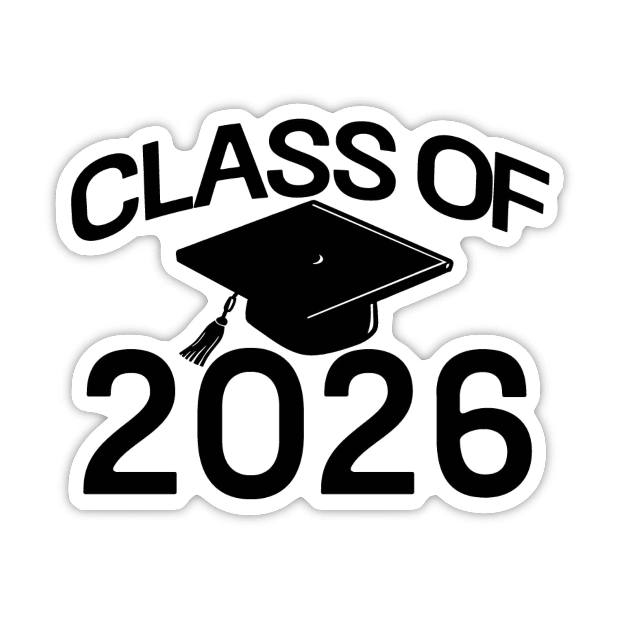 Celebrate the graduate in your life with this fun "class of 2026" graduation sticker - a great gift for their big day! High quality vinyl sticker. Great to decorate laptops, water bottles, car windows, coolers, suitcases, bikes, kayaks, phone cases, journals, and more.