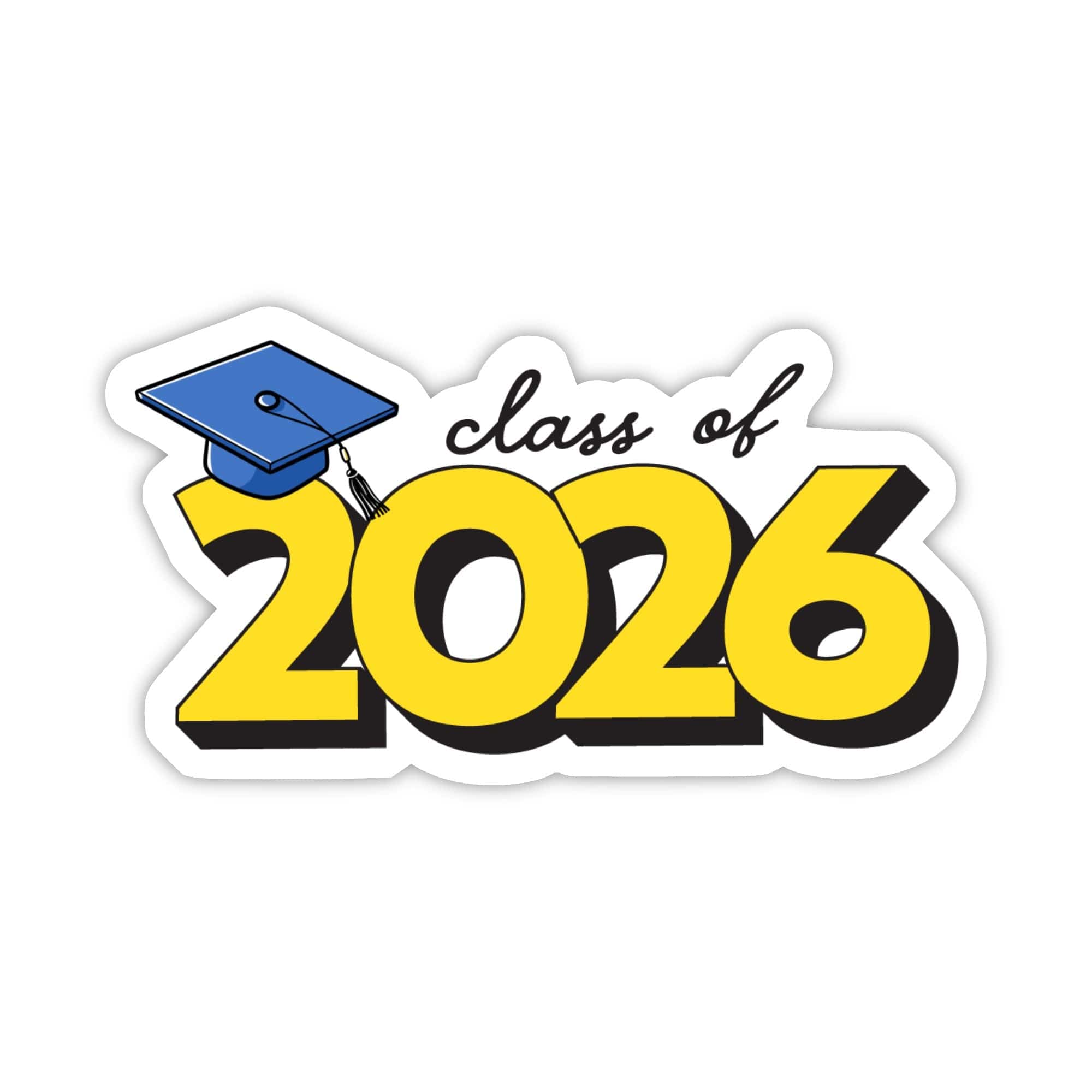 Celebrate the graduate in your life with this fun "class of 2026" graduation sticker - a great gift for their big day! High quality vinyl sticker. Great to decorate laptops, water bottles, car windows, coolers, suitcases, bikes, kayaks, phone cases, journals, and more.
