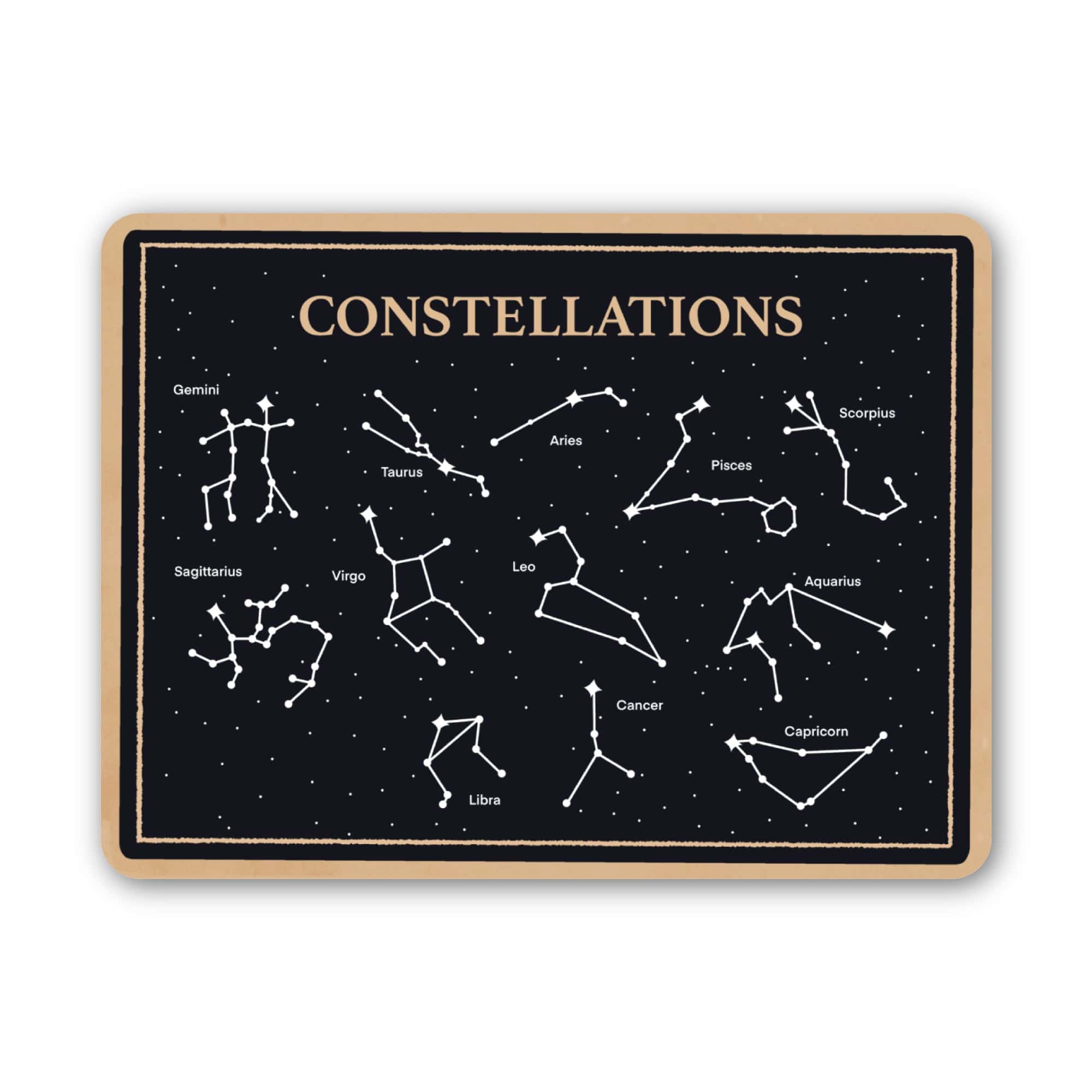 Bring the museum home with the constellation chart sticker. The perfect gift for the curious minds in your life - or treat yourself, you deserve it. High quality vinyl sticker. Great to decorate laptops, water bottles, car windows, coolers, suitcases, bikes, kayaks, phone cases, journals, and more.