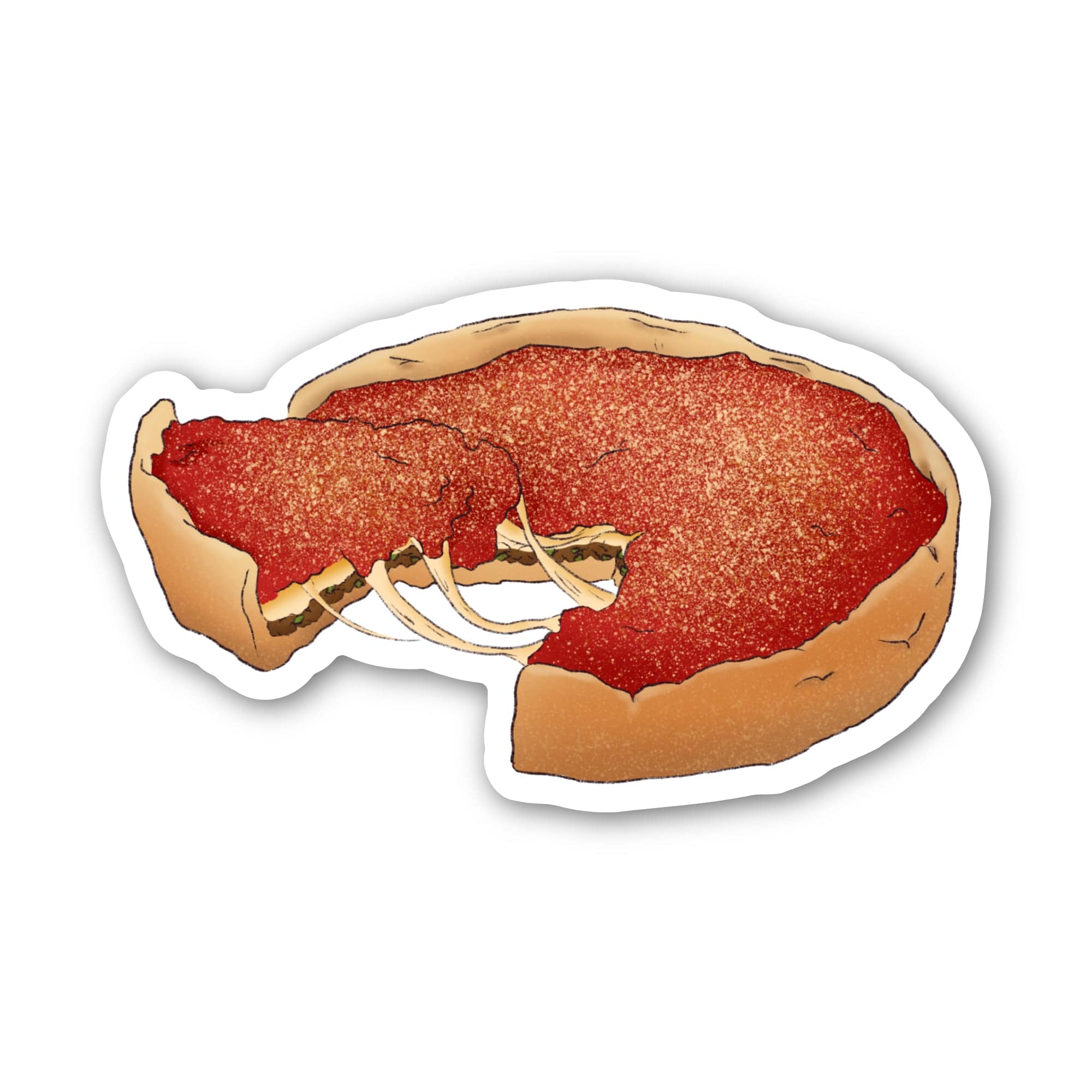 Chicago's finest... deep-dish pizza, as a sticker! Artwork by Adrienne Schaumann @adrienne.makes ~ High quality vinyl sticker. Great to decorate laptops, water bottles, car windows, coolers, suitcases, bikes, kayaks, phone cases, journals, and more.