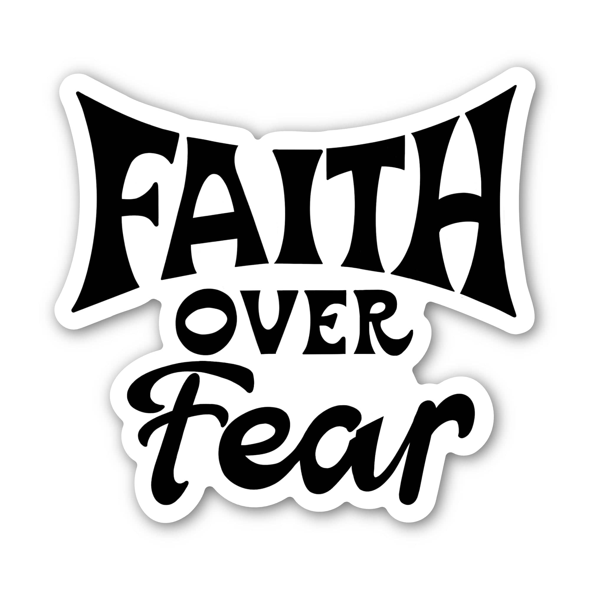 This "faith over fear" text faith sticker is your daily reminder to choose trust over worrying - the perfect gift to bring hope and confidence to those who need it. High quality vinyl sticker. Great to decorate laptops, water bottles, car windows, coolers, suitcases, bikes, kayaks, phone cases, journals, and more.
