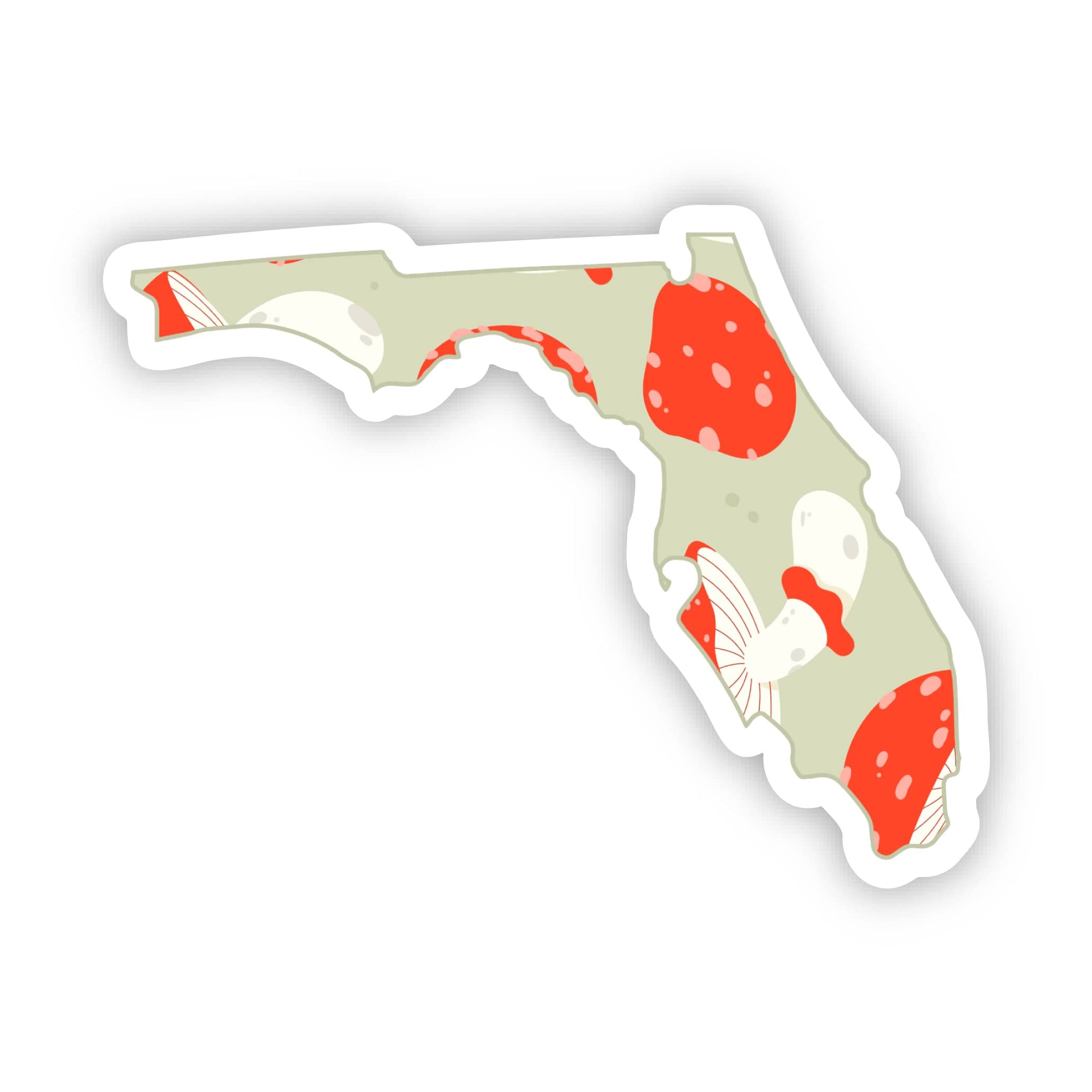 Share your fun side with our mushroom pattern state stickers. If you love nature and the state of Florida, this sticker is for you! High quality vinyl sticker. Great to decorate laptops, water bottles, car windows, coolers, suitcases, bikes, kayaks, phone cases, journals, and more.