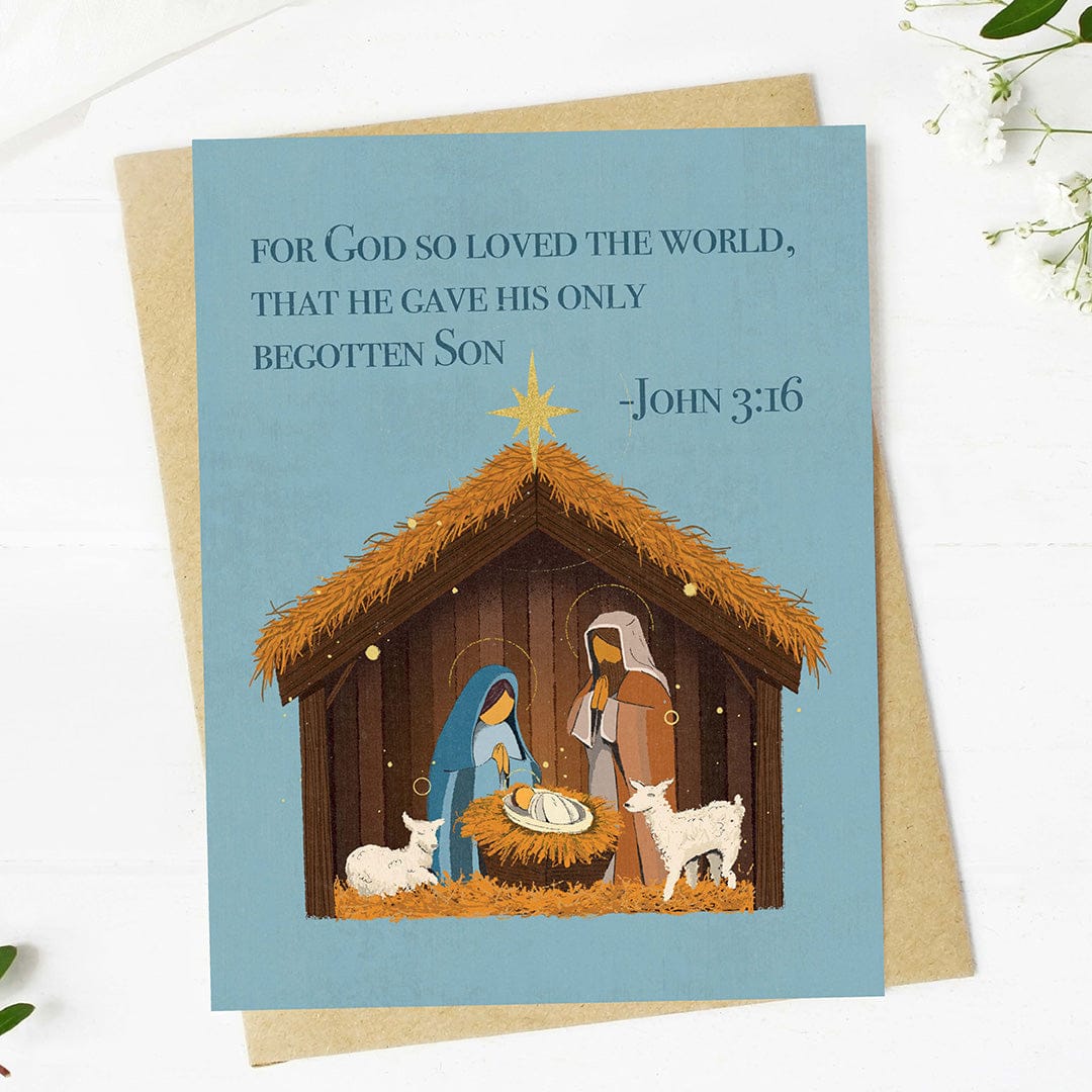 Celebrate God’s greatest gift with this inspiring nativity card featuring John 3:16. A heartfelt way to share love, faith and the true message of Christmas.