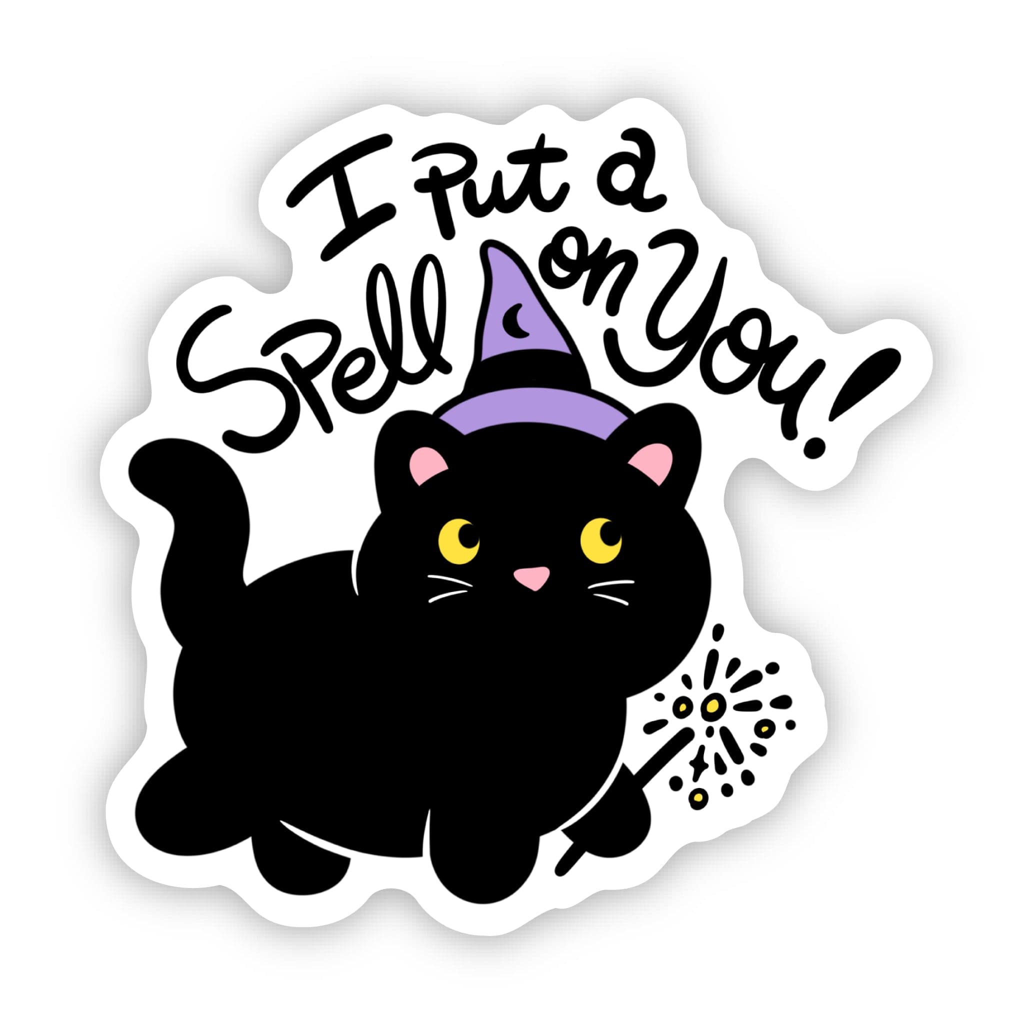 Cast some spells with our black cat "I put a spell on you" sticker. High quality vinyl sticker. Great to decorate laptops, water bottles, car windows, coolers, suitcases, bikes, kayaks, phone cases, journals, and more.