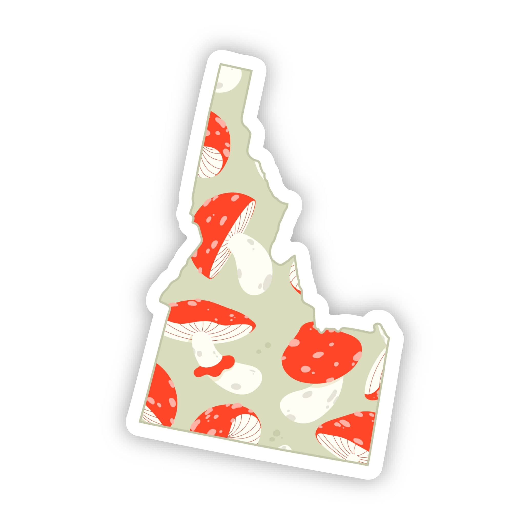 Share your fun side with our mushroom pattern state stickers. If you love nature and the state of Idaho, this sticker is for you! High quality vinyl sticker. Great to decorate laptops, water bottles, car windows, coolers, suitcases, bikes, kayaks, phone cases, journals, and more.