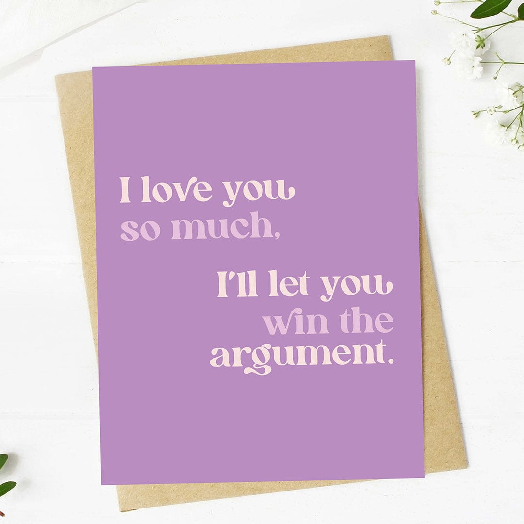 Share some light-hearted humor this Valentine's day with our "I'll let you win the argument" greeting card.