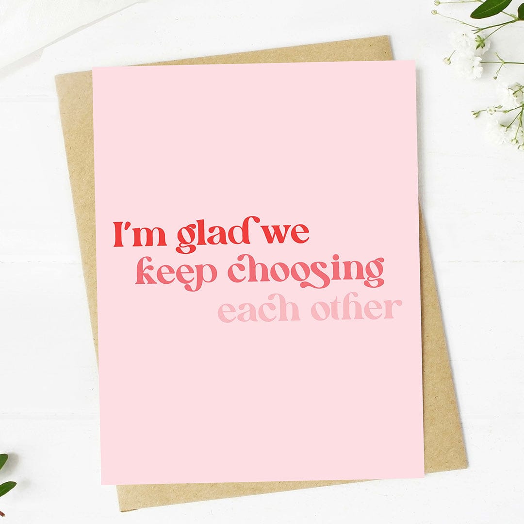 Celebrate a love that shows up every day with our "I'm glad we keep choosing each other" Valentine’s day card.