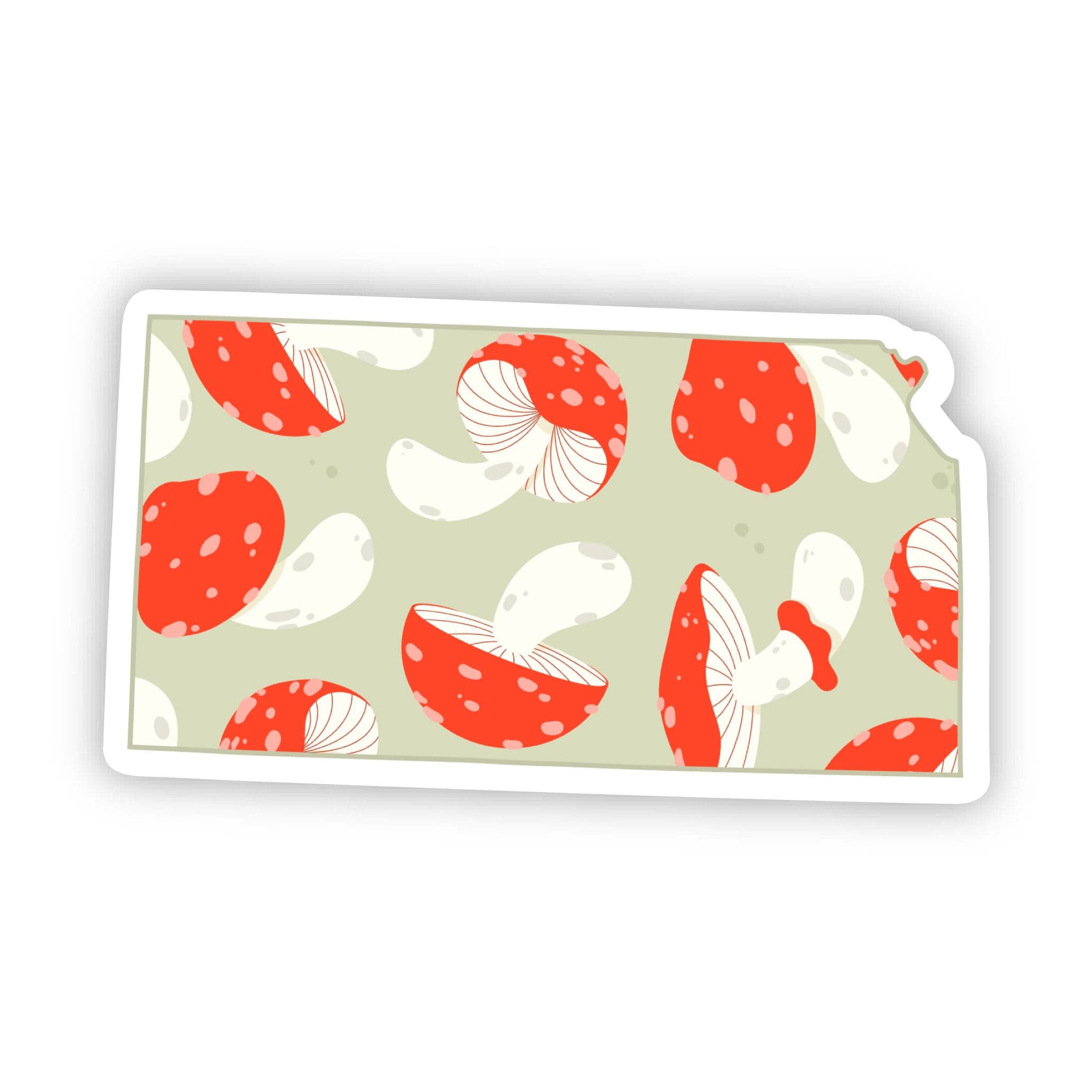 Share your fun side with our mushroom pattern state stickers. If you love nature and the state of Kansas, this sticker is for you! High quality vinyl sticker. Great to decorate laptops, water bottles, car windows, coolers, suitcases, bikes, kayaks, phone cases, journals, and more.