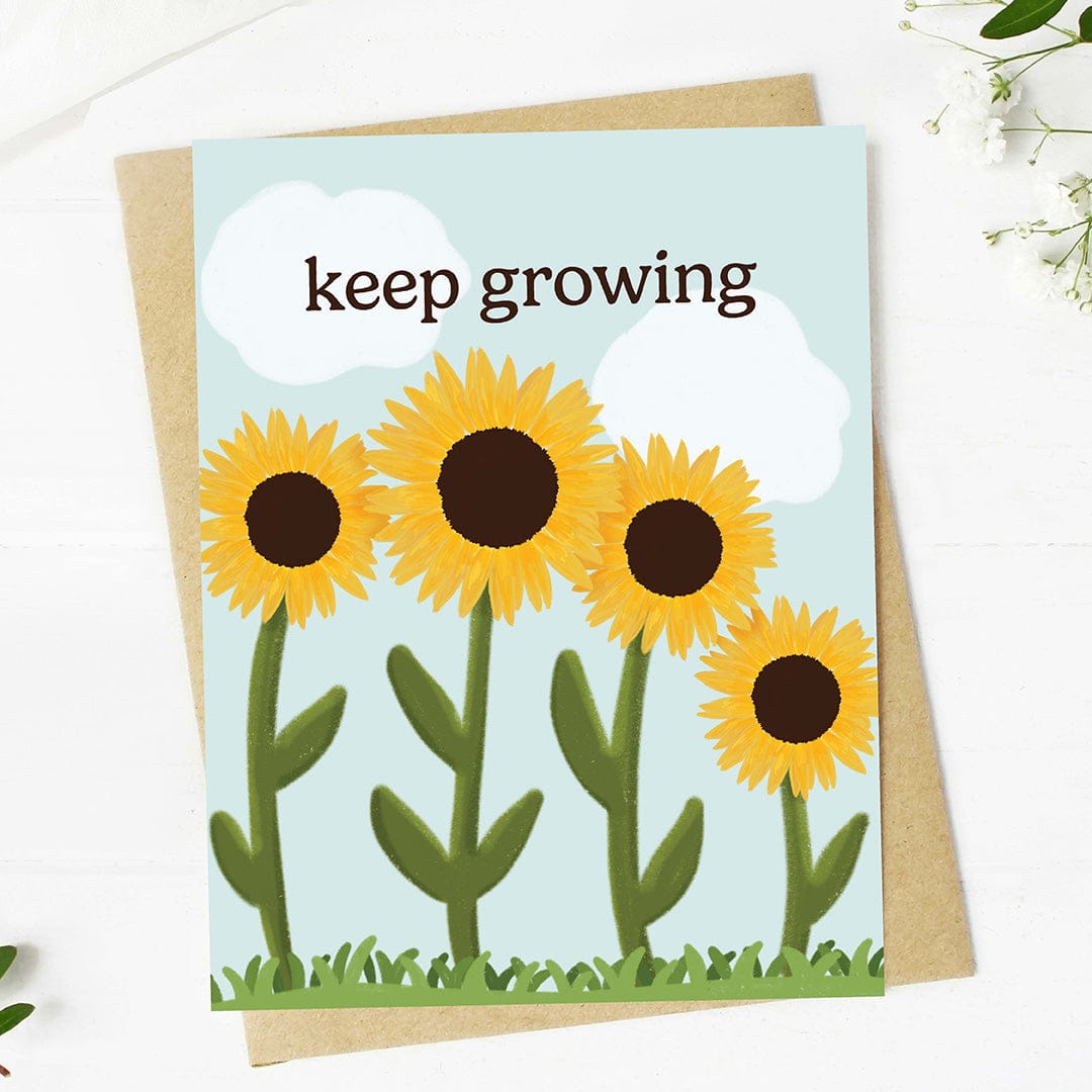 Inspire your loved ones with our "keep growing" sunflower greeting card. This card is guaranteed to lift spirits and spread encouragement.