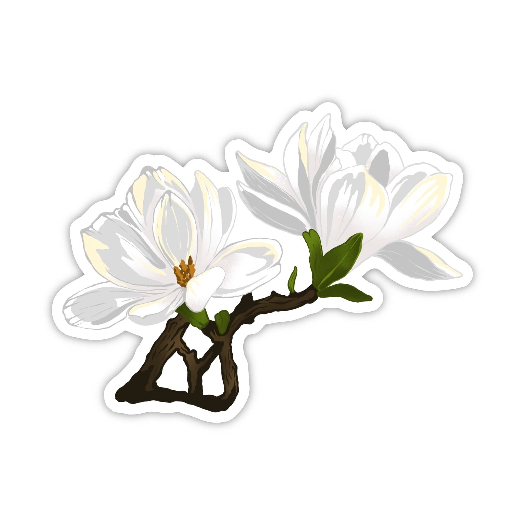 Categories: flower stickers, magnolia sticker, floral stickers, botanical sticker, spring blossom sticker, gifts for her, nature sticker, elegant sticker, vintage floral sticker, laptop sticker, water bottle sticker, journal sticker, garden gifts, Southern flower sticker, aesthetic stickers