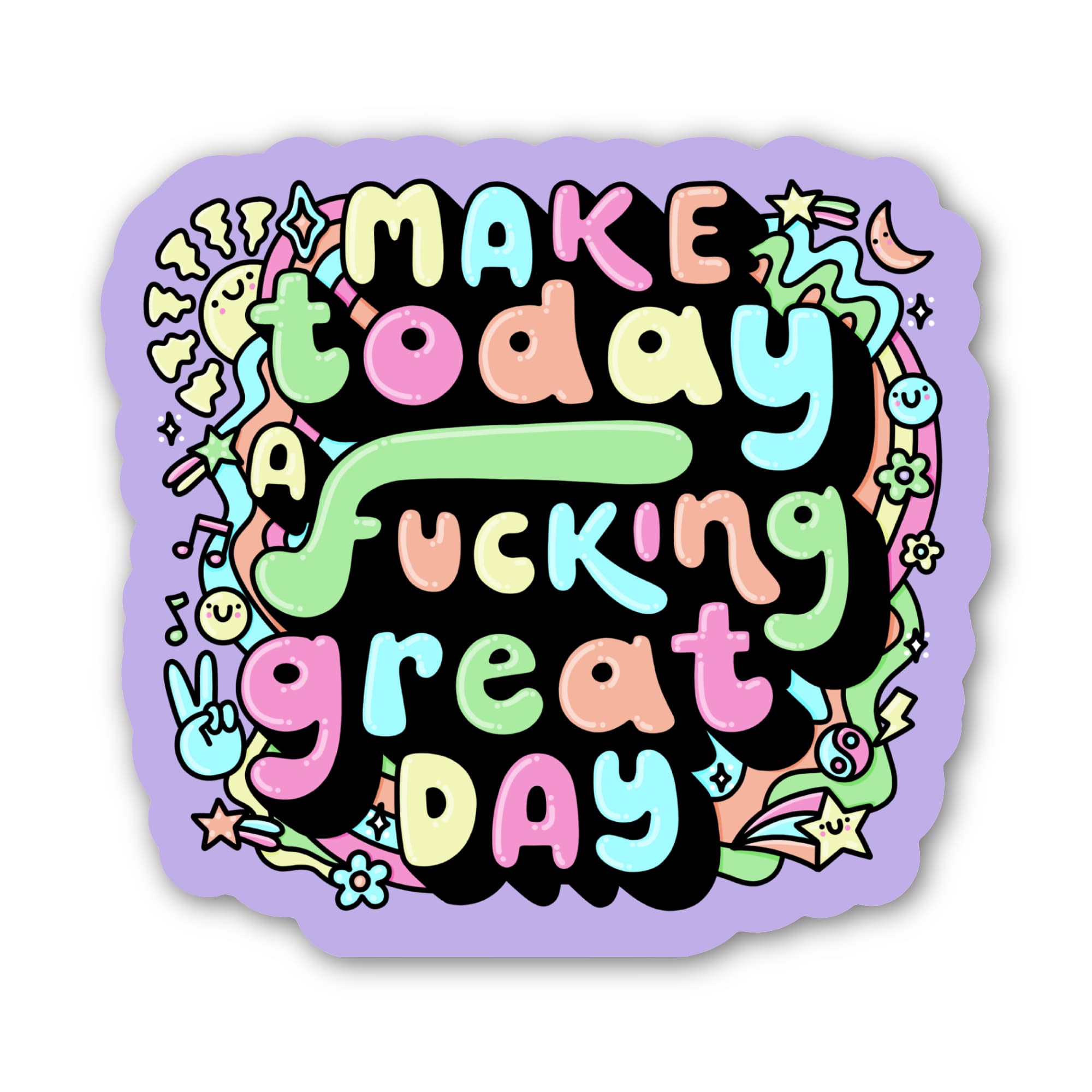 Bring those good vibes everywhere you go with this encouraging "make today a fucking great day" sticker - an essential sticker to start your day. High quality vinyl sticker. Great to decorate laptops, water bottles, car windows, coolers, suitcases, bikes, kayaks, phone cases, journals, and more.