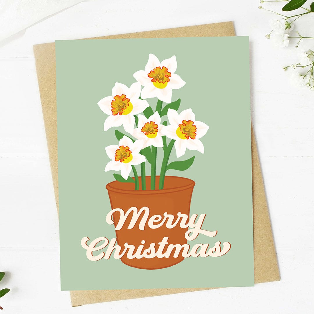 Categories: card, cards, greeting cards, christmas, christmas cards, holiday cards, holiday season, winter, winter cards, gifts for christmas, stocking stuffers, seasonal greeting cards, christmas gifts, christmas greeting cards, winter greeting cards, winter, season's greetings, lettering, text greeting cards, daffodils, flowers, christmas flowers, winter florals, florals.