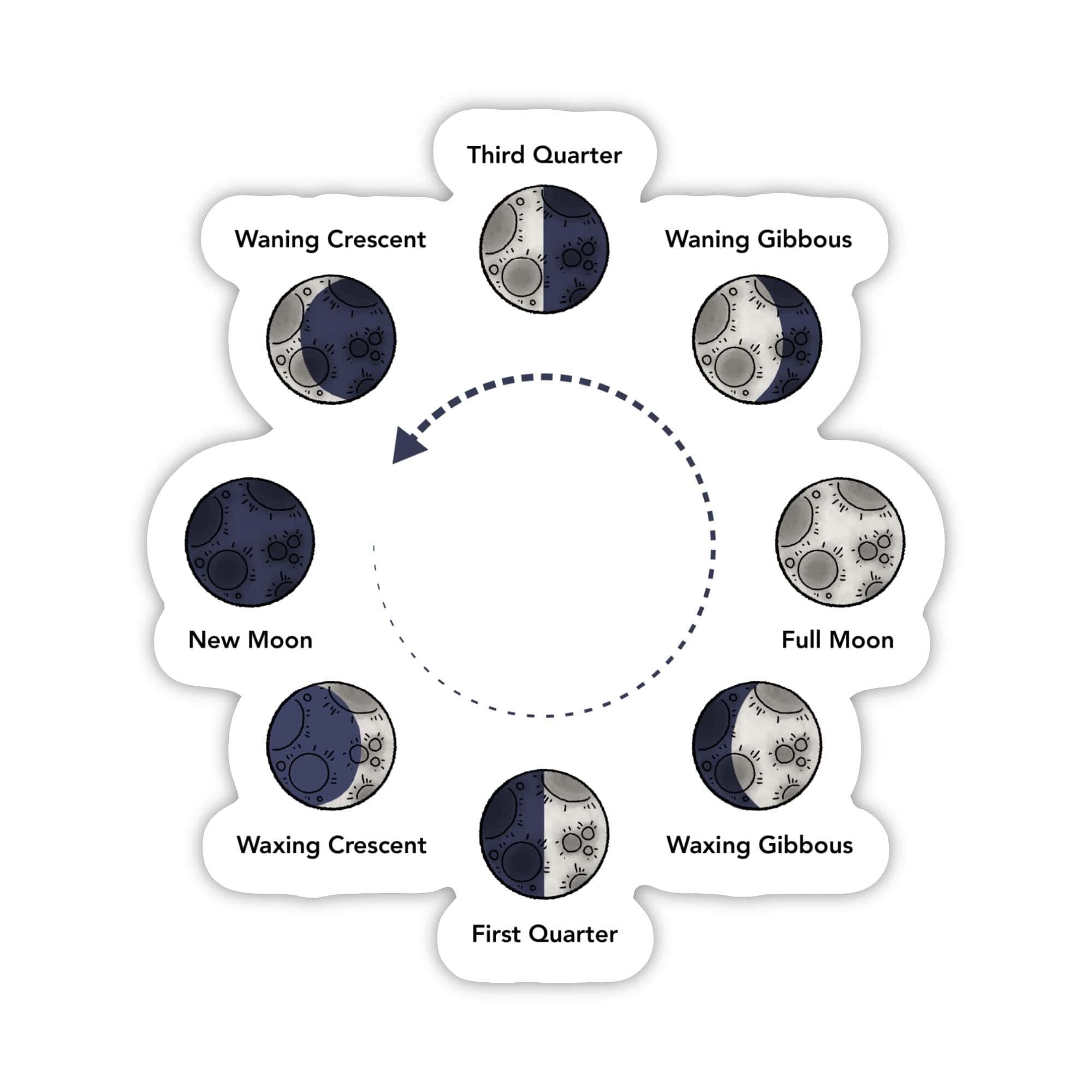 Categories: moon sticker, moon phases sticker, astronomy sticker, space sticker, lunar sticker, science sticker, museum sticker, celestial sticker, sticker, vinyl sticker