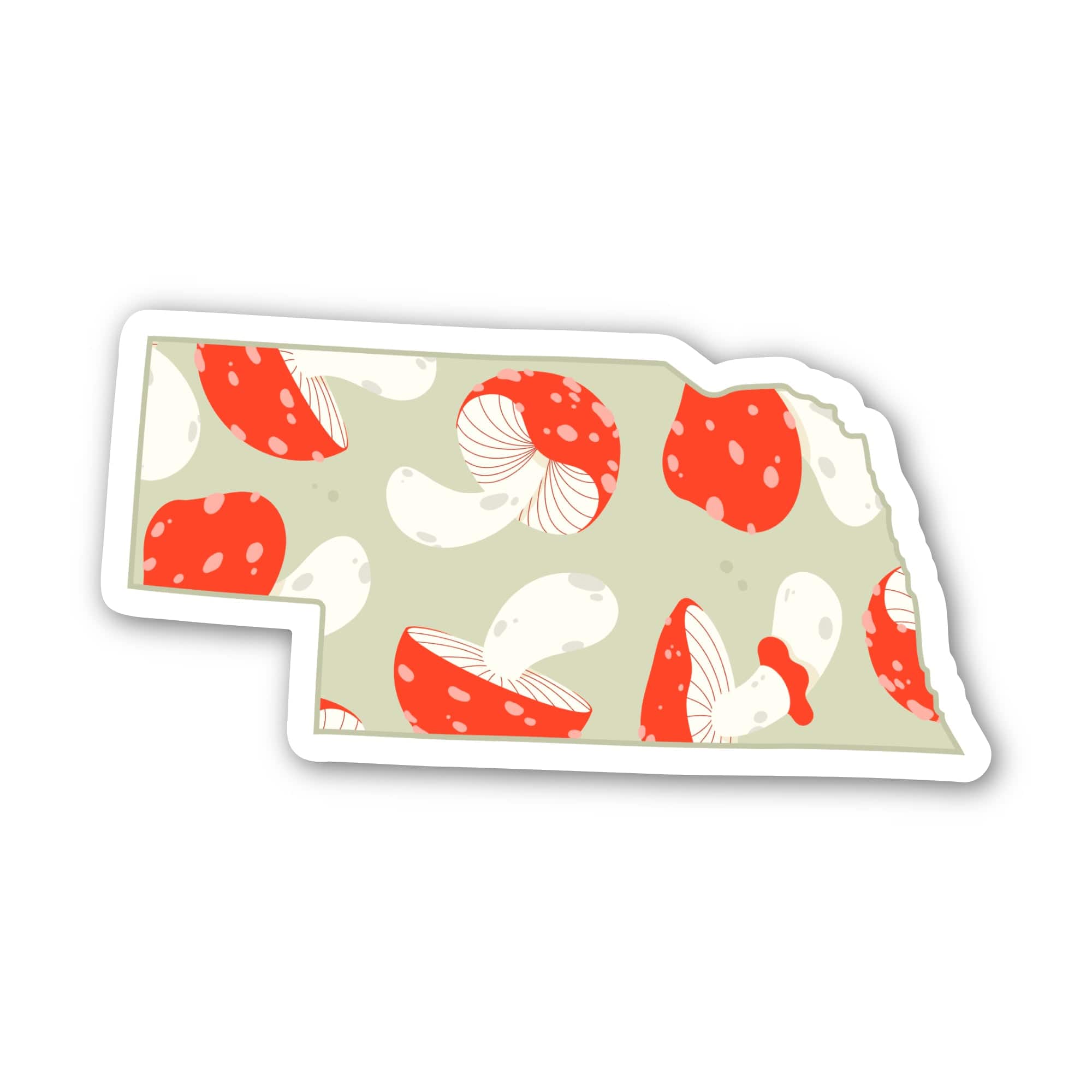 Share your fun side with our mushroom pattern state stickers. If you love nature and the state of Nebraska, this sticker is for you! High quality vinyl sticker. Great to decorate laptops, water bottles, car windows, coolers, suitcases, bikes, kayaks, phone cases, journals, and more.