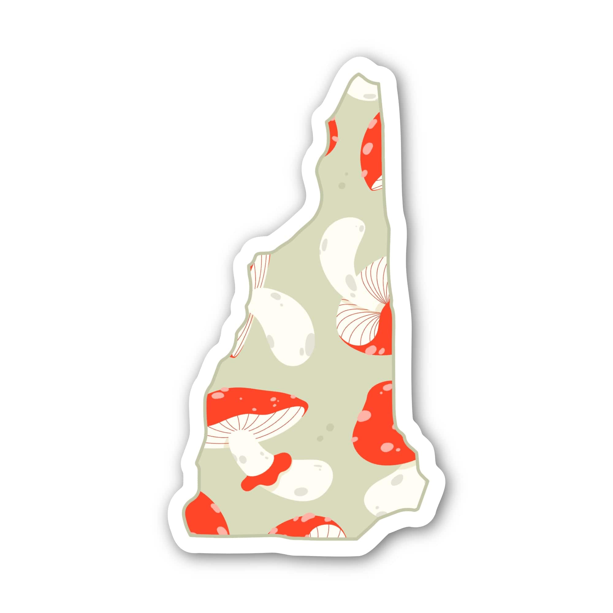 Share your fun side with our mushroom pattern state stickers. If you love nature and the state of New Hampshire, this sticker is for you! High quality vinyl sticker. Great to decorate laptops, water bottles, car windows, coolers, suitcases, bikes, kayaks, phone cases, journals, and more.