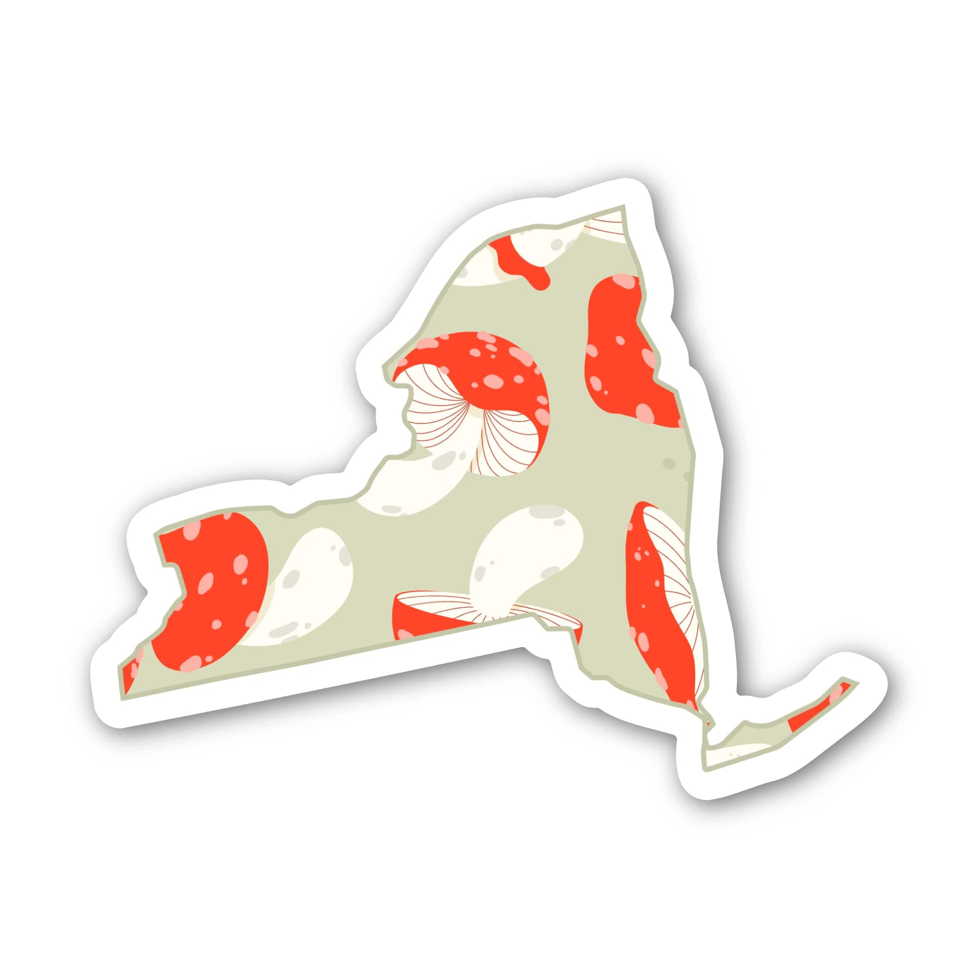 Share your fun side with our mushroom pattern state stickers. If you love nature and the state of New York, this sticker is for you! High quality vinyl sticker. Great to decorate laptops, water bottles, car windows, coolers, suitcases, bikes, kayaks, phone cases, journals, and more.