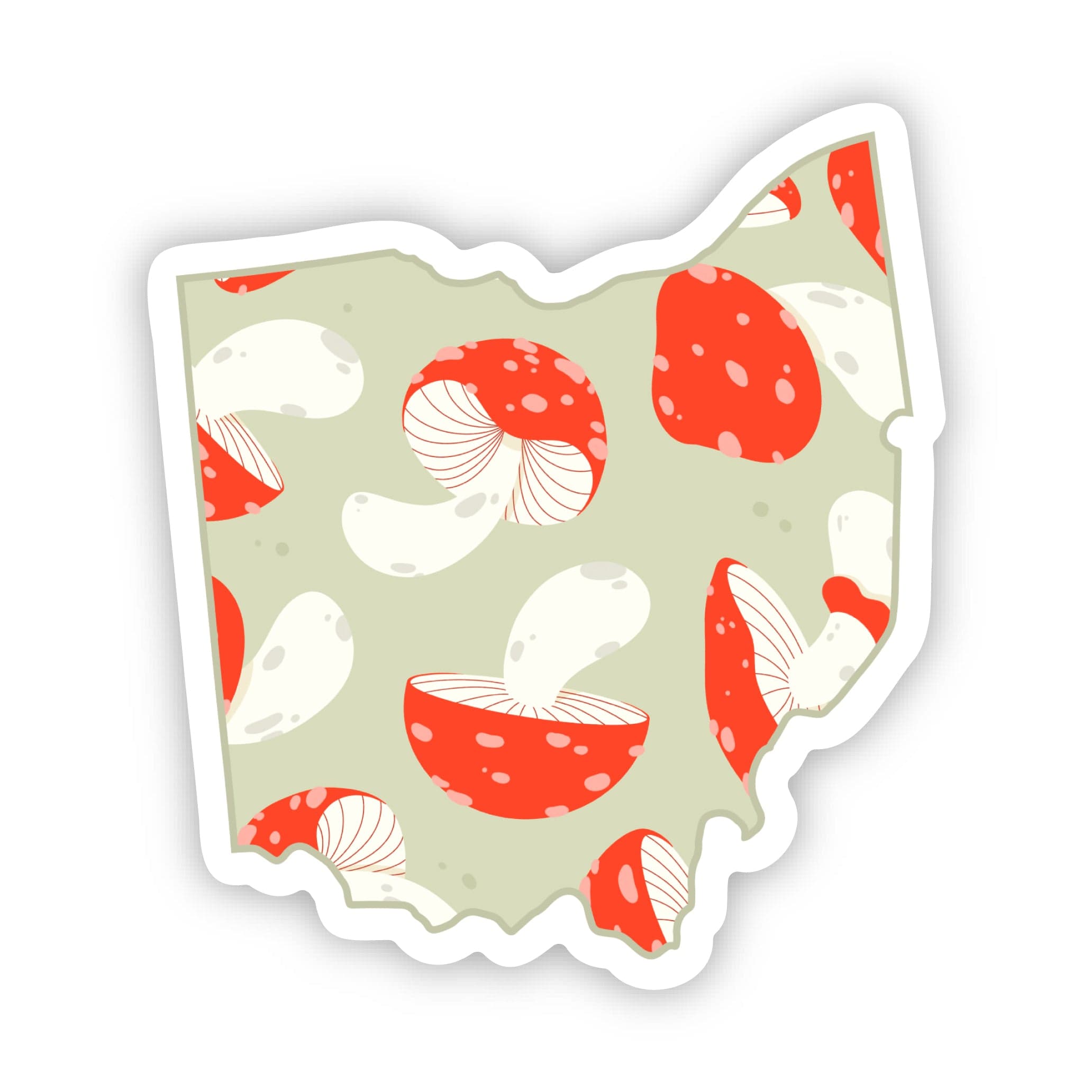 Share your fun side with our mushroom pattern state stickers. If you love nature and the state of Ohio, this sticker is for you! High quality vinyl sticker. Great to decorate laptops, water bottles, car windows, coolers, suitcases, bikes, kayaks, phone cases, journals, and more.