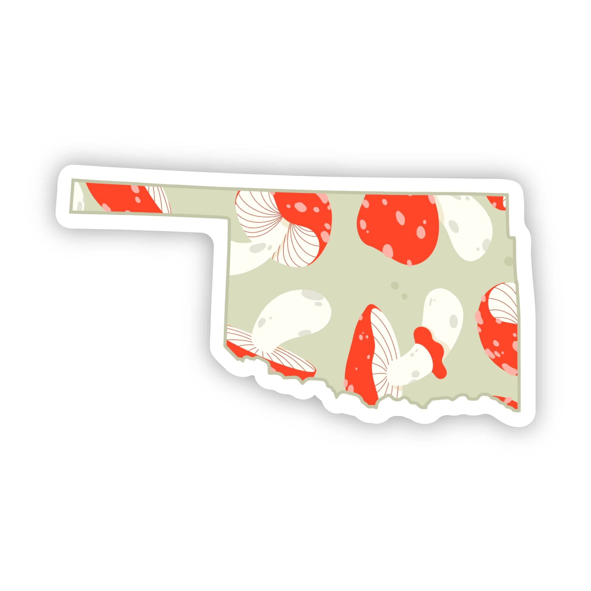 Share your fun side with our mushroom pattern state stickers. If you love nature and the state of Oklahoma, this sticker is for you! High quality vinyl sticker. Great to decorate laptops, water bottles, car windows, coolers, suitcases, bikes, kayaks, phone cases, journals, and more.