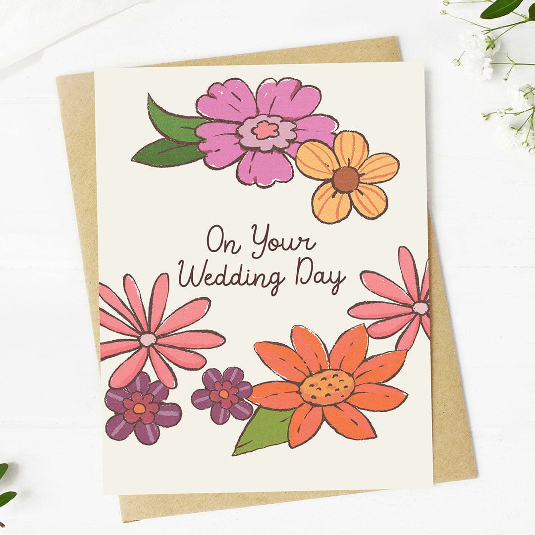 Give the happy couple a good start to married life with this beautiful floral greeting card which reads "on your wedding day".