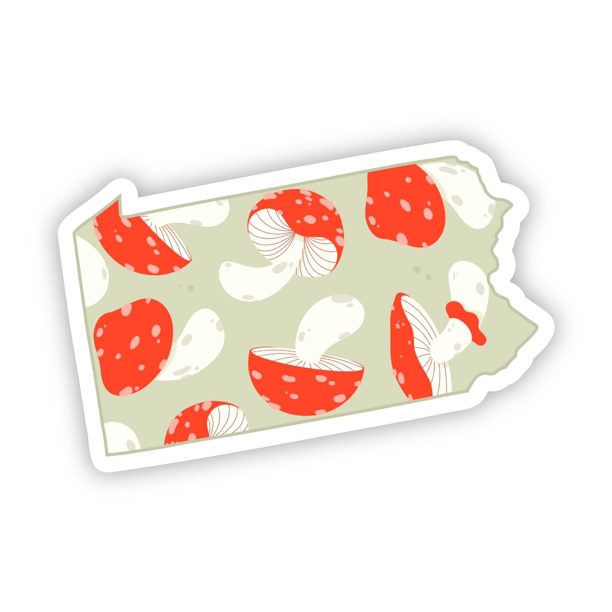 Share your fun side with our mushroom pattern state stickers. If you love nature and the state of Pennsylvania, this sticker is for you! High quality vinyl sticker. Great to decorate laptops, water bottles, car windows, coolers, suitcases, bikes, kayaks, phone cases, journals, and more.