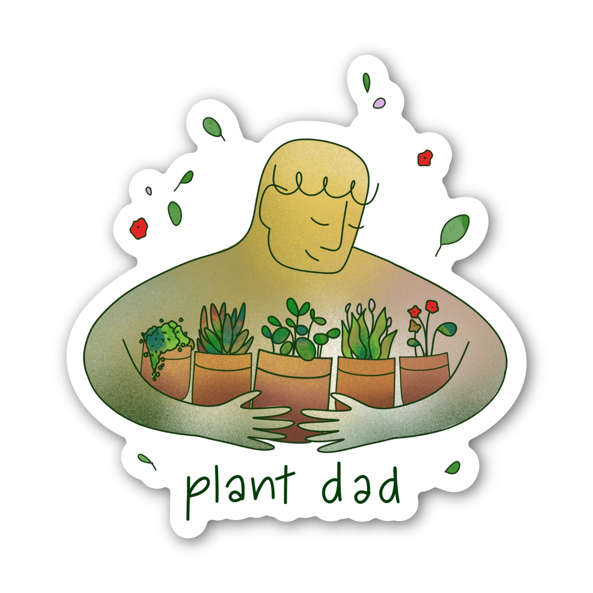 Celebrate your love of plants with this "plant dad" sticker! Whether you just got your first cactus, or have a whole rainforest in your house, this one's for you! High quality vinyl sticker. Great to decorate laptops, water bottles, car windows, coolers, suitcases, bikes, kayaks, phone cases, journals, and more.