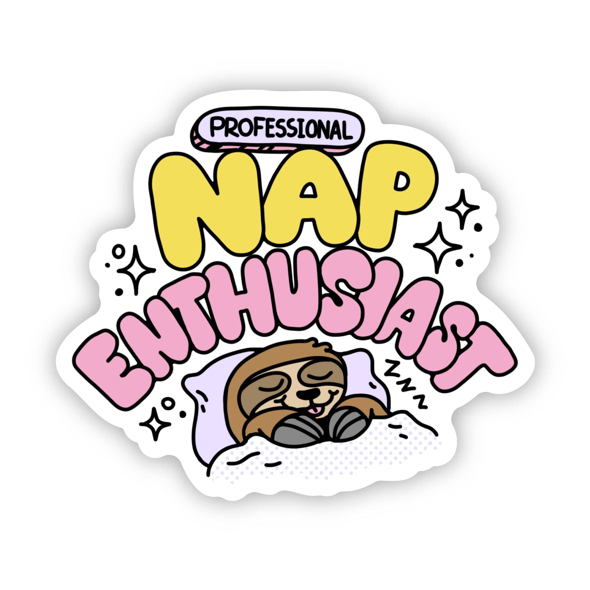 If nap enthusiast could be a listed skill on your resume, then this funny "professional nap enthusiast" sloth sticker is perfect for you! High quality vinyl sticker. Great to decorate laptops, water bottles, car windows, coolers, suitcases, bikes, kayaks, phone cases, journals, and more.