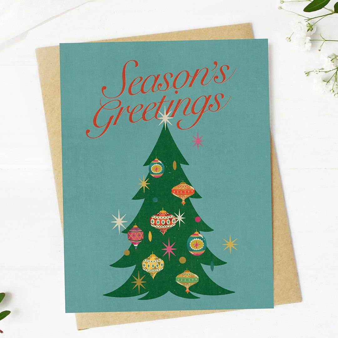 Celebrate the holiday season with this decorative vintage Christmas ornament tree card. This card is the perfect way to let your family and friends know you care this holiday season.