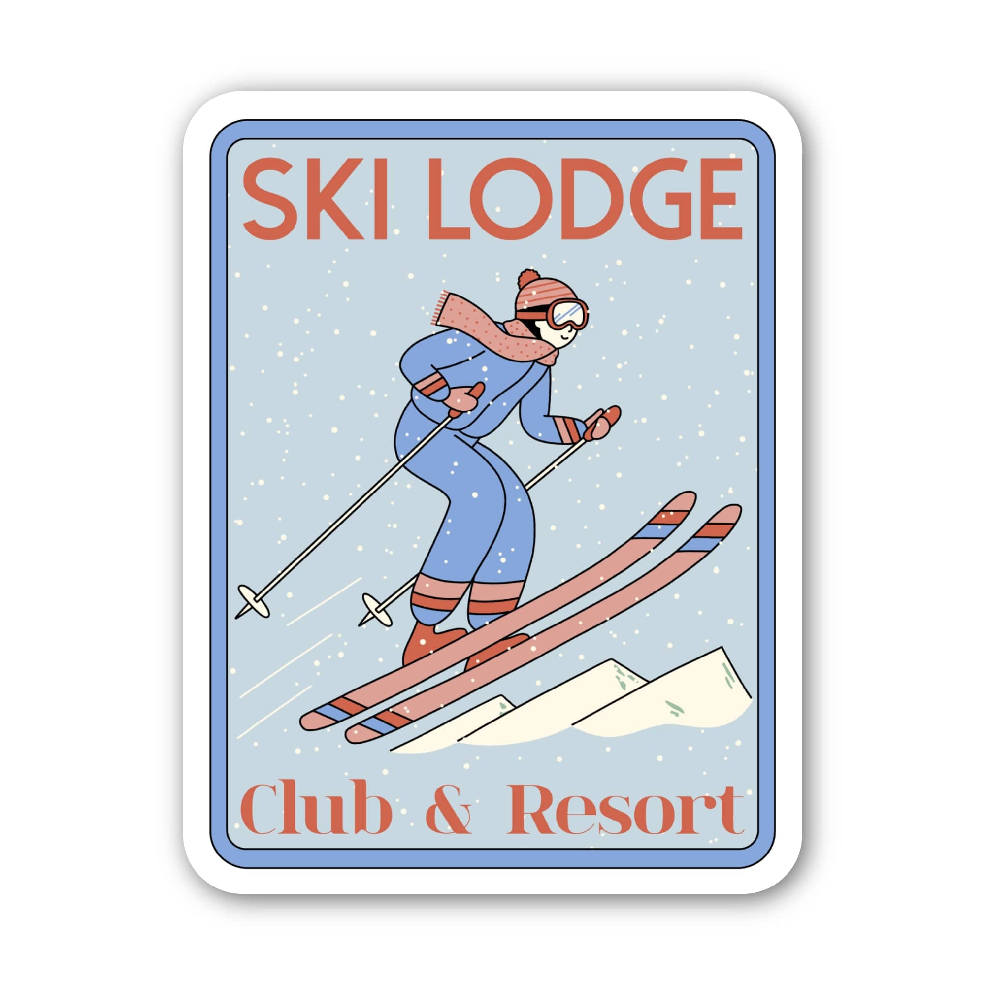 Ski Lodge Club & Resort Blue Skiing Sticker