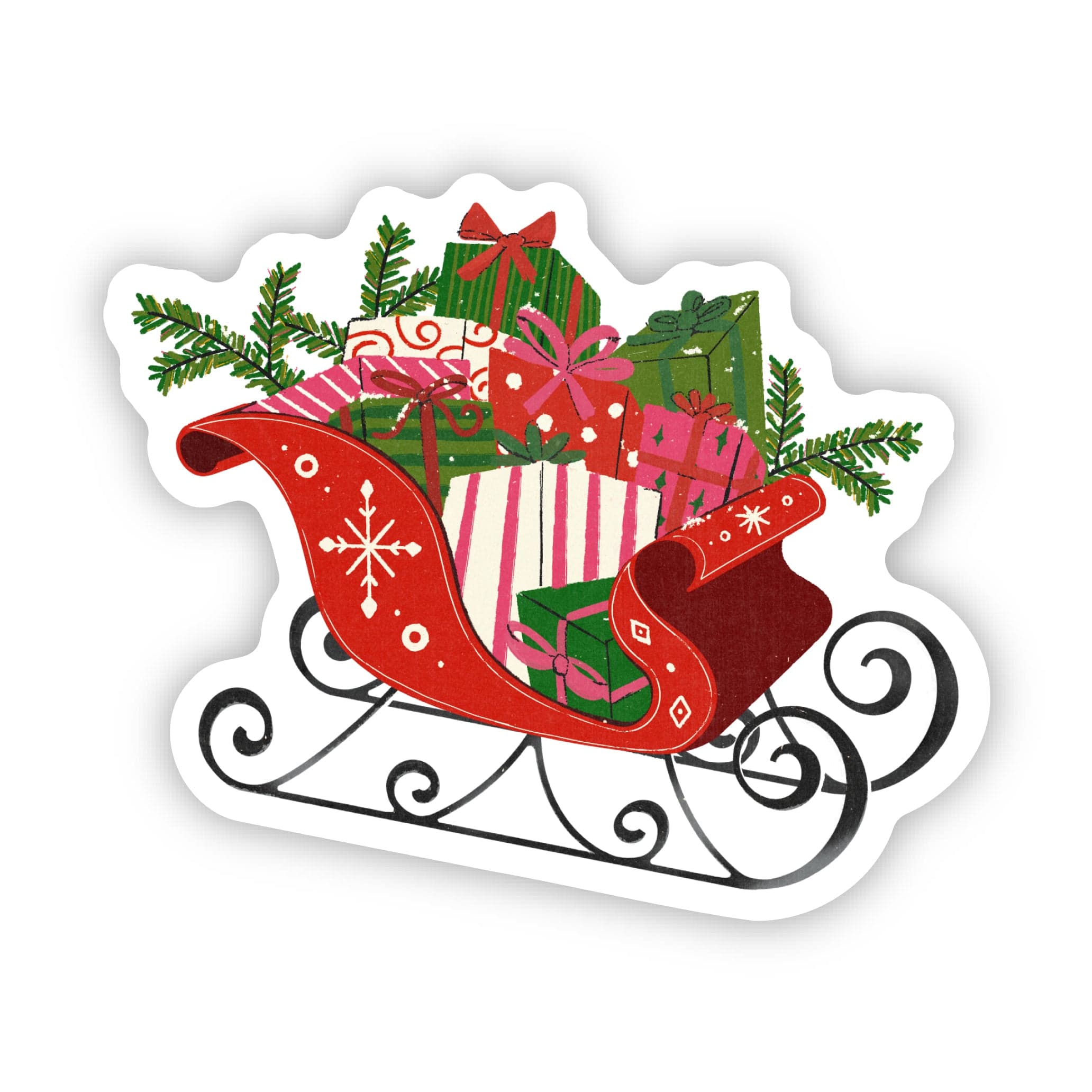 Add a festive touch to your home with this magical gift-filled sleigh sticker. Perfect for decorating your favorite possessions this holiday season. High quality vinyl sticker. Great to decorate laptops, water bottles, car windows, coolers, suitcases, bikes, kayaks, phone cases, journals, and more.