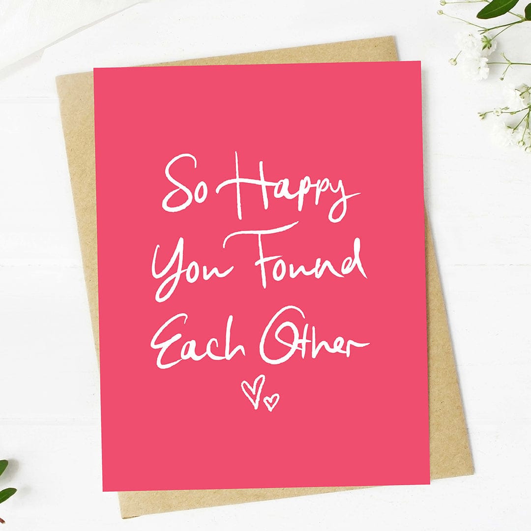 Celebrate love with this "so happy you found each other" wedding card. Perfect for sharing wholesome feelings on a couple’s special day.