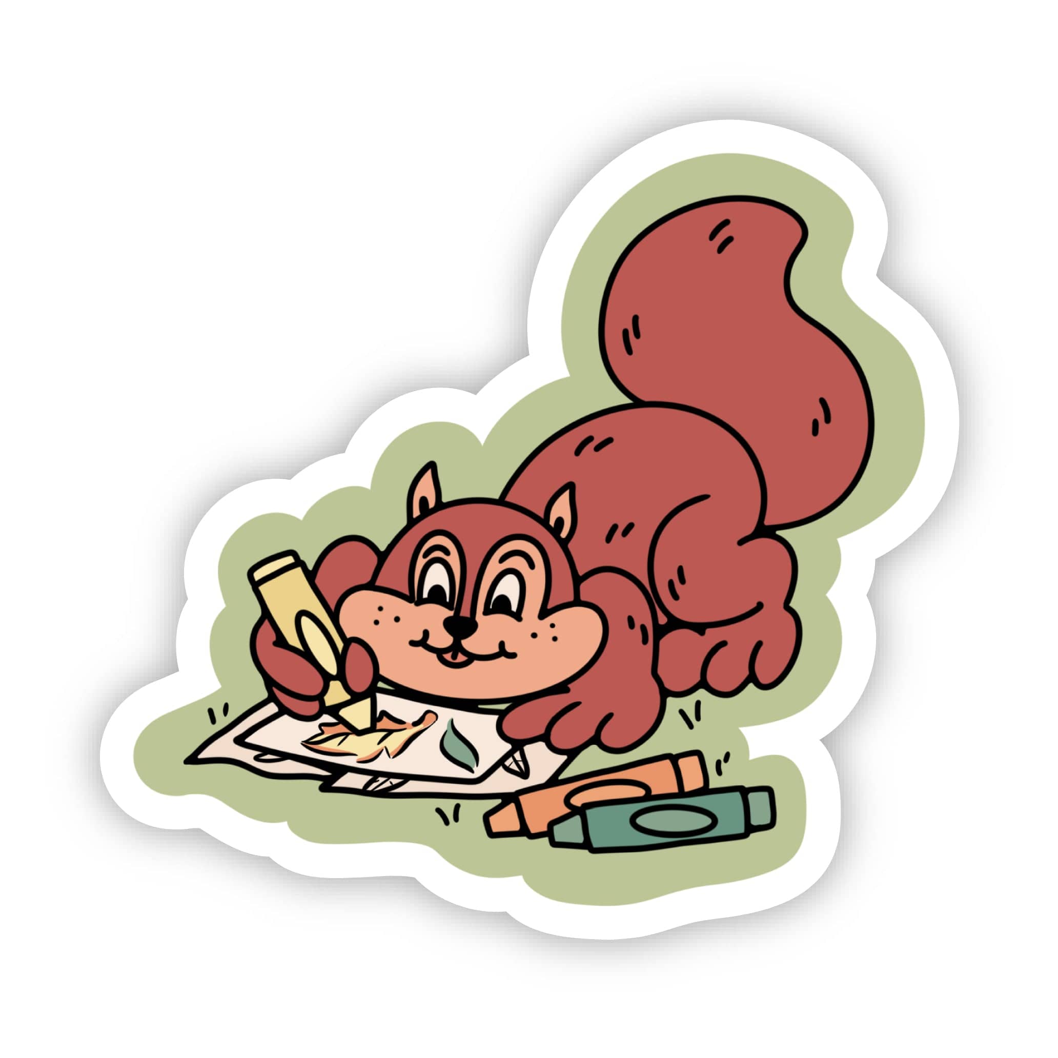 Add some playful fun to your collection with this artsy squirrel sticker - the perfect sticker for anyone who loves art and animals. High quality vinyl sticker. Great to decorate laptops, water bottles, car windows, coolers, suitcases, bikes, kayaks, phone cases, journals, and more.