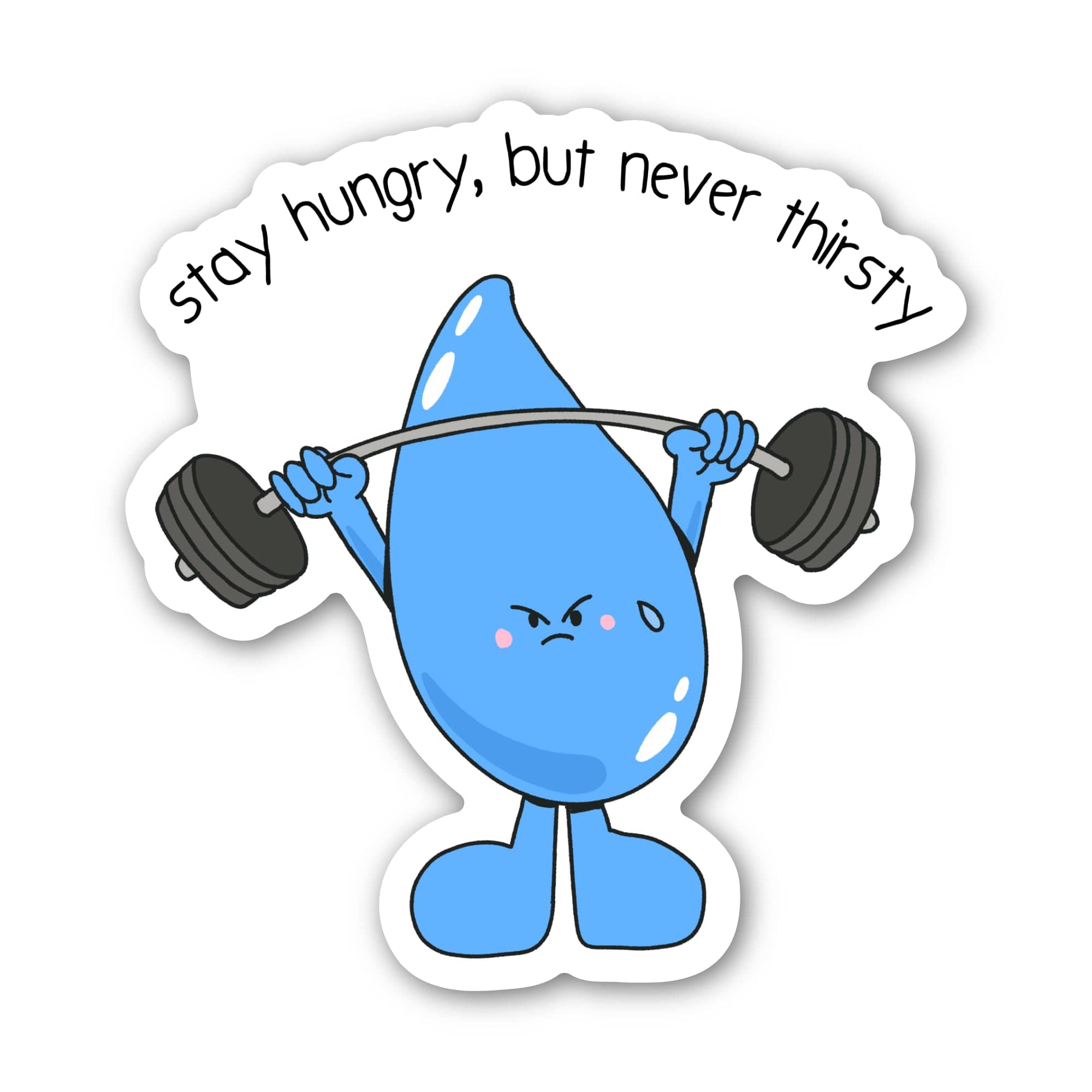 Share your gym motivation with our "stay hungry, but never thirsty" sticker. Get this one for your water bottle or even your gym bag, High quality vinyl sticker. Great to decorate laptops, water bottles, car windows, coolers, suitcases, bikes, kayaks, phone cases, journals, and more.
