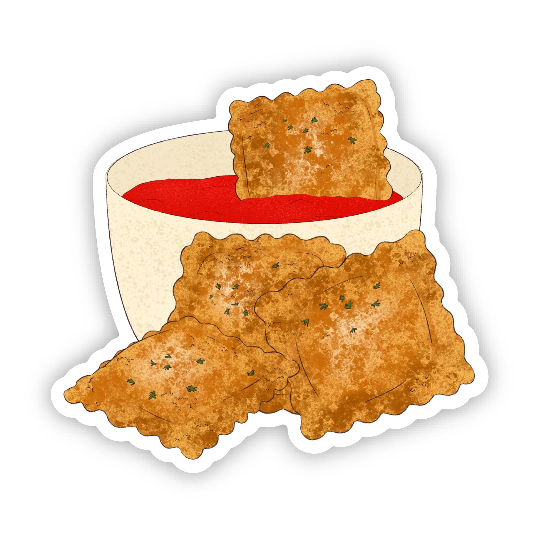 Get a taste of St Louis with this delicious toasted ravioli sticker. Artwork by Adrienne Schaumann @adrienne.makes ~ High quality vinyl sticker. Great to decorate laptops, water bottles, car windows, coolers, suitcases, bikes, kayaks, phone cases, journals, and more.