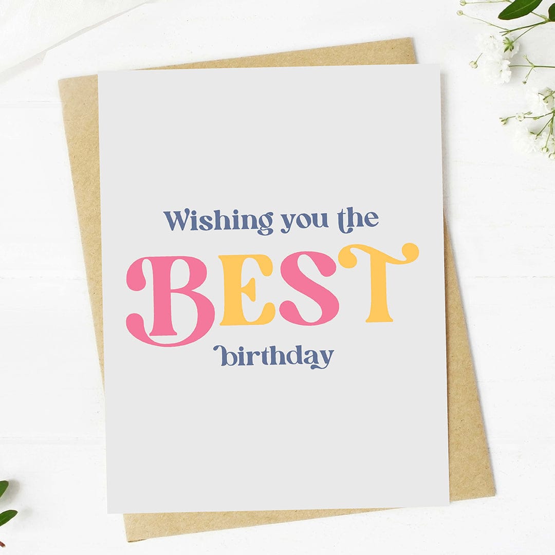 Share the love on their birthday with this fun text greeting card which reads "wishing you the BEST birthday" - guaranteed to put a smile on their face.