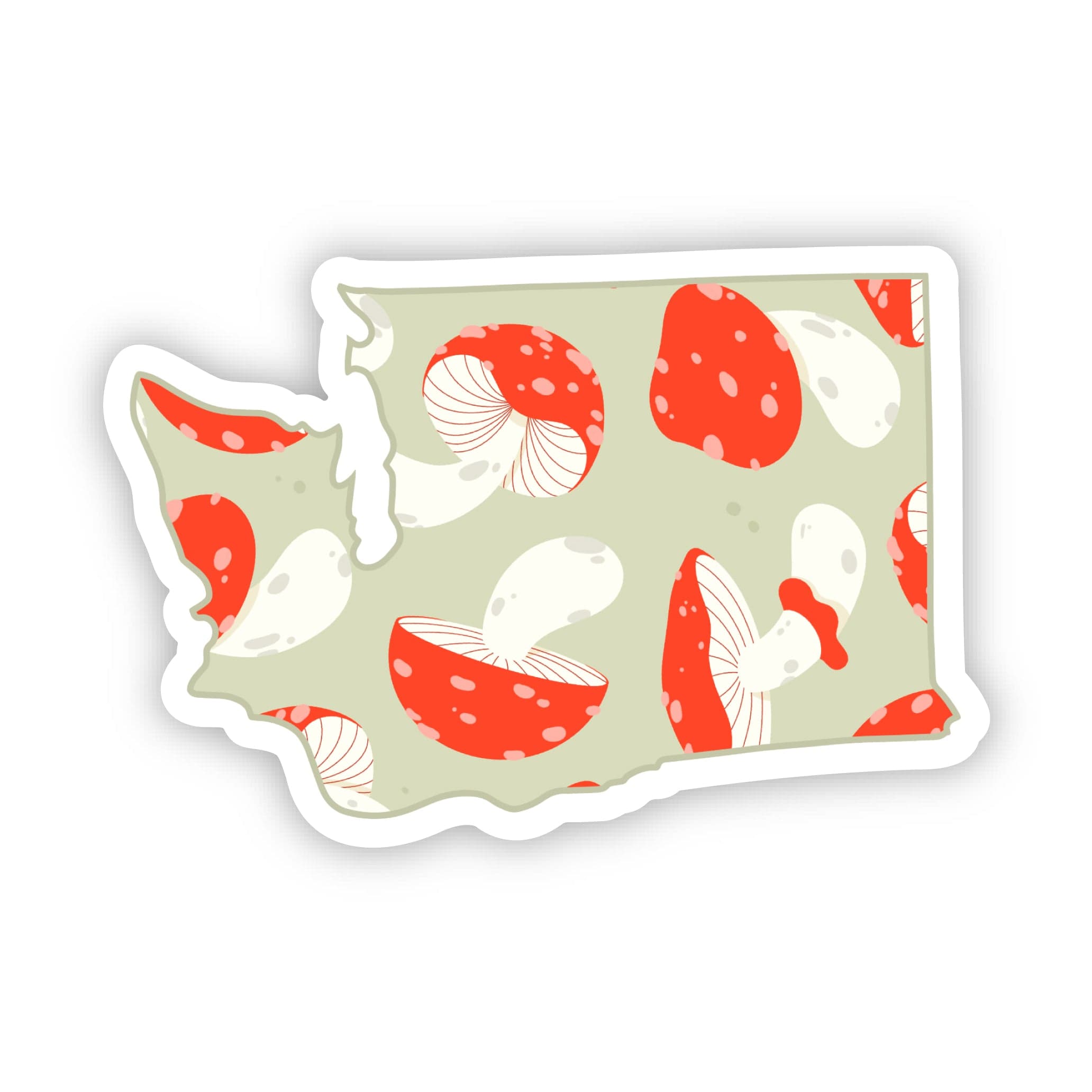 Share your fun side with our mushroom pattern state stickers. If you love nature and the state of Washington, this sticker is for you! High quality vinyl sticker. Great to decorate laptops, water bottles, car windows, coolers, suitcases, bikes, kayaks, phone cases, journals, and more.