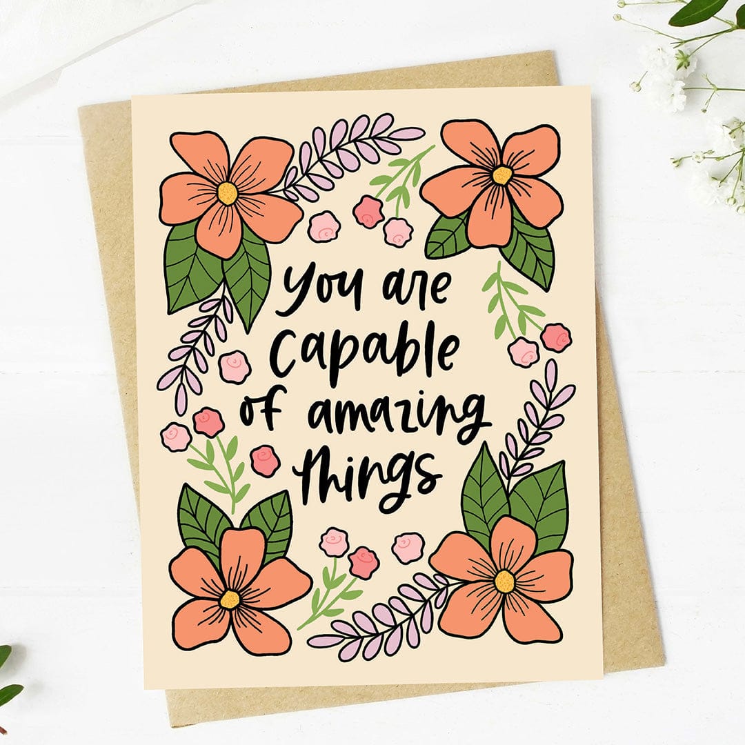 Gift this encouragement card to someone who could use some positivity. This elegant floral design is the perfect reminder "you are capable of amazing things".