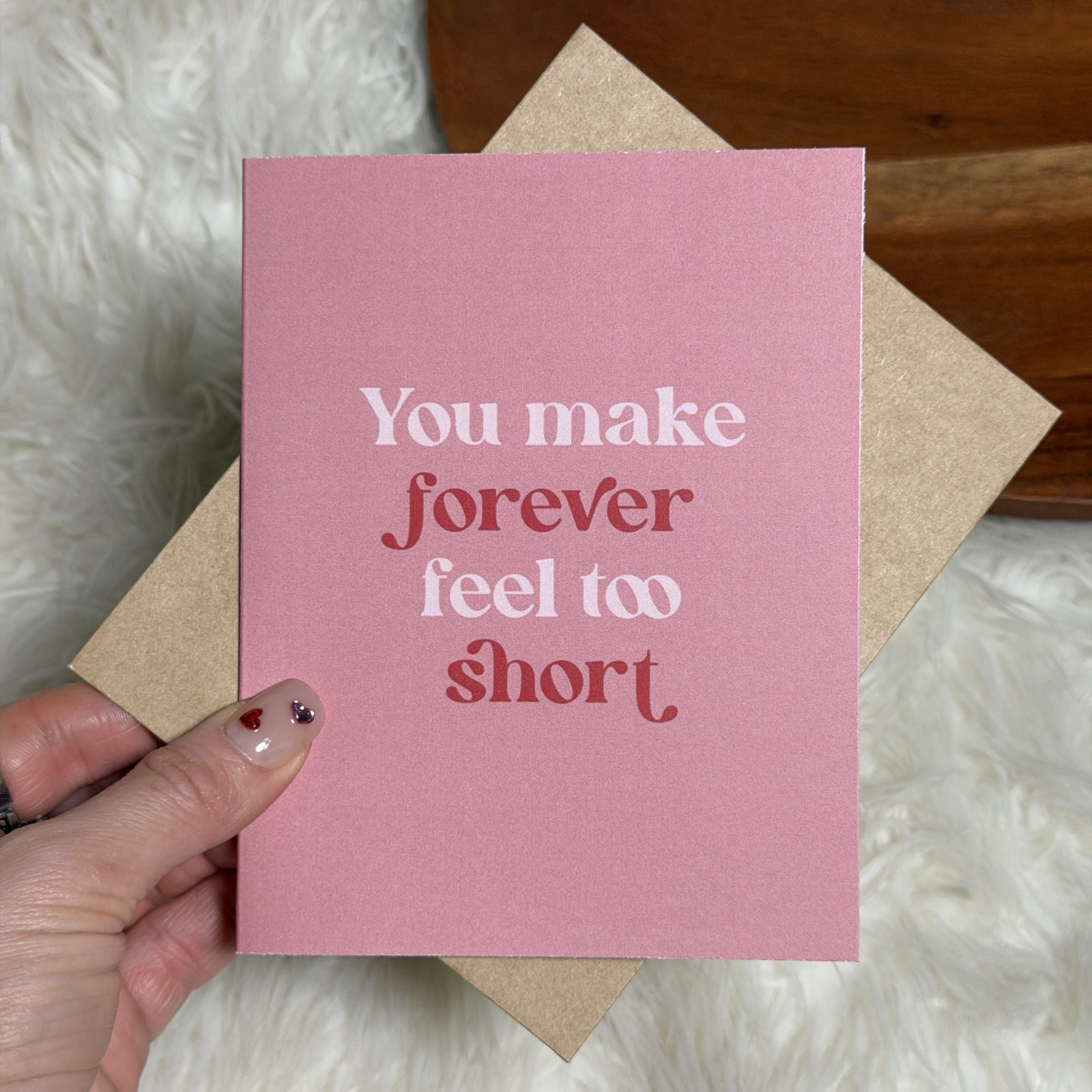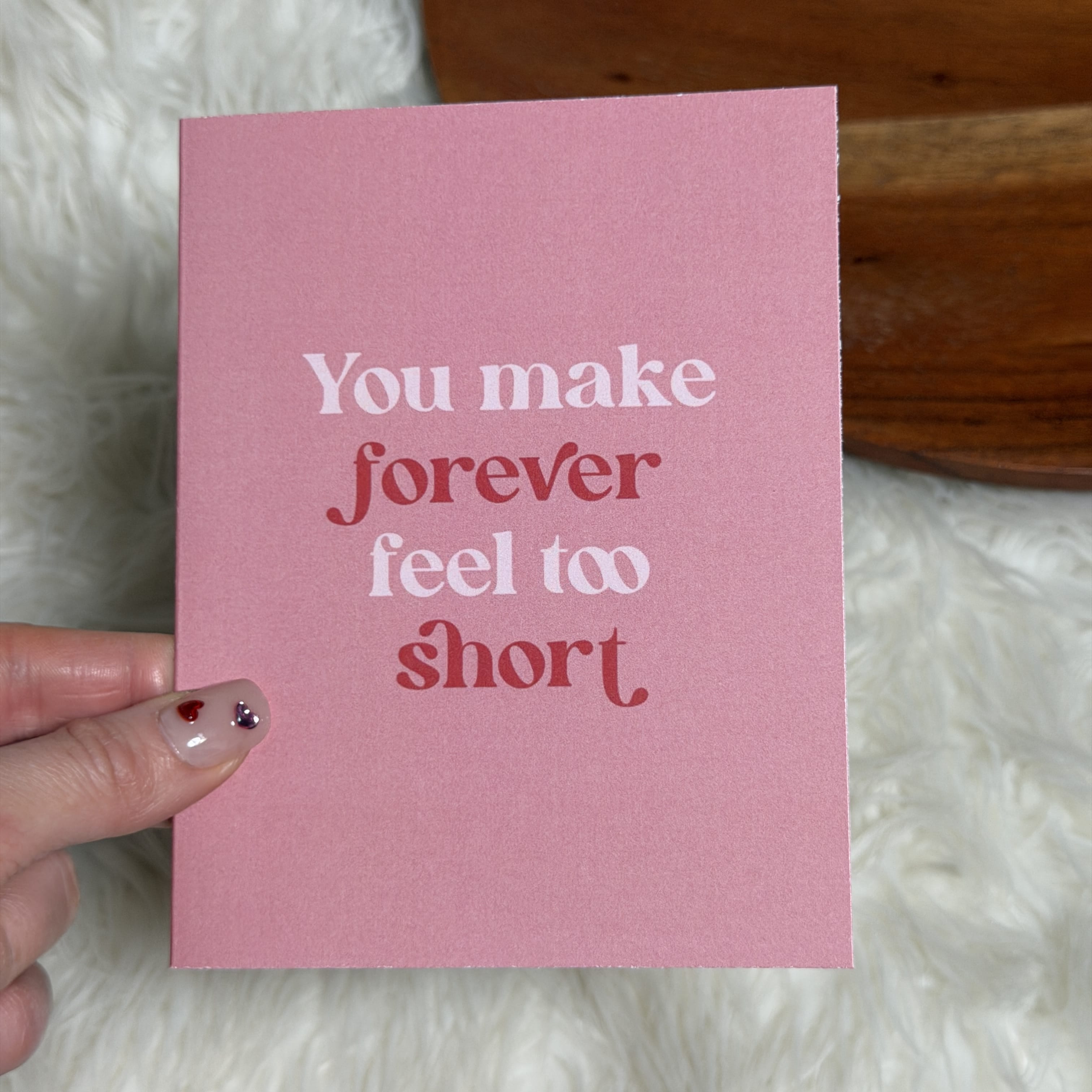 Show them just how much they mean to you this Valentine's day with our heartfelt "you make forever feel too short" text greeting card.