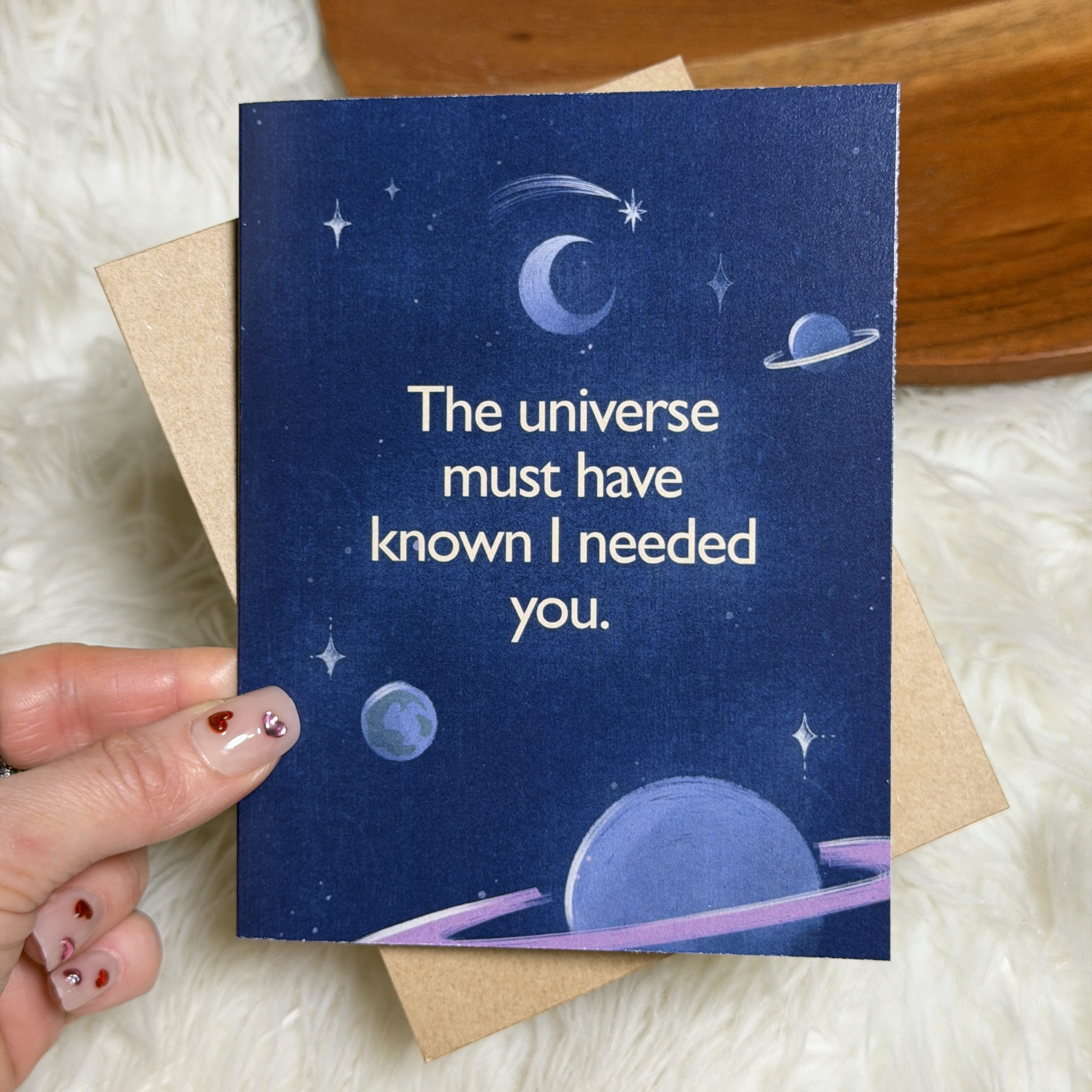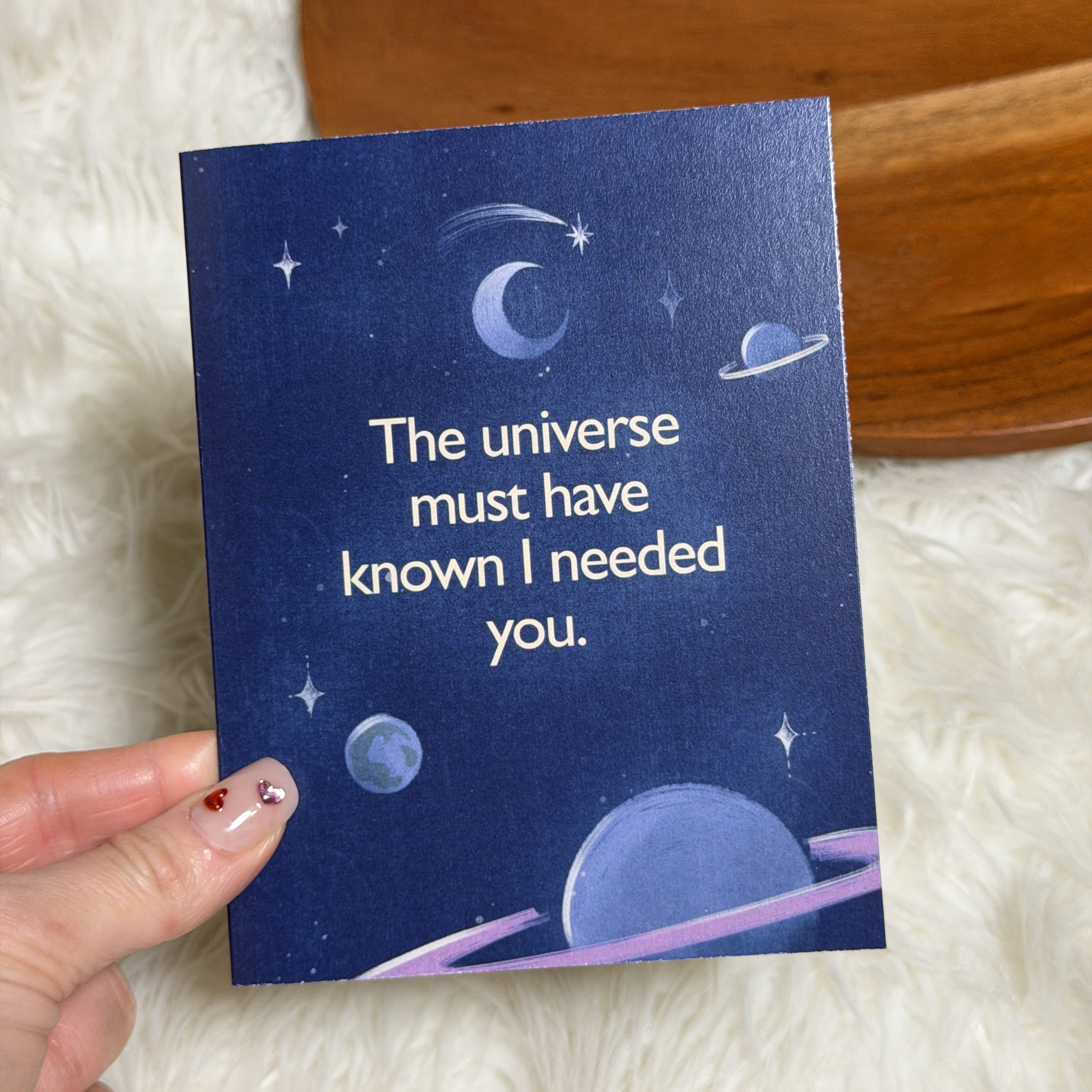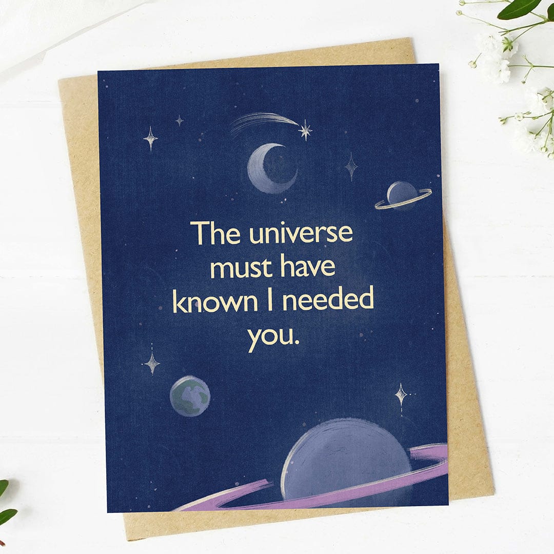 Express a little fate-filled romance with this heartfelt "the universe must have known I needed you" Valentine’s card.